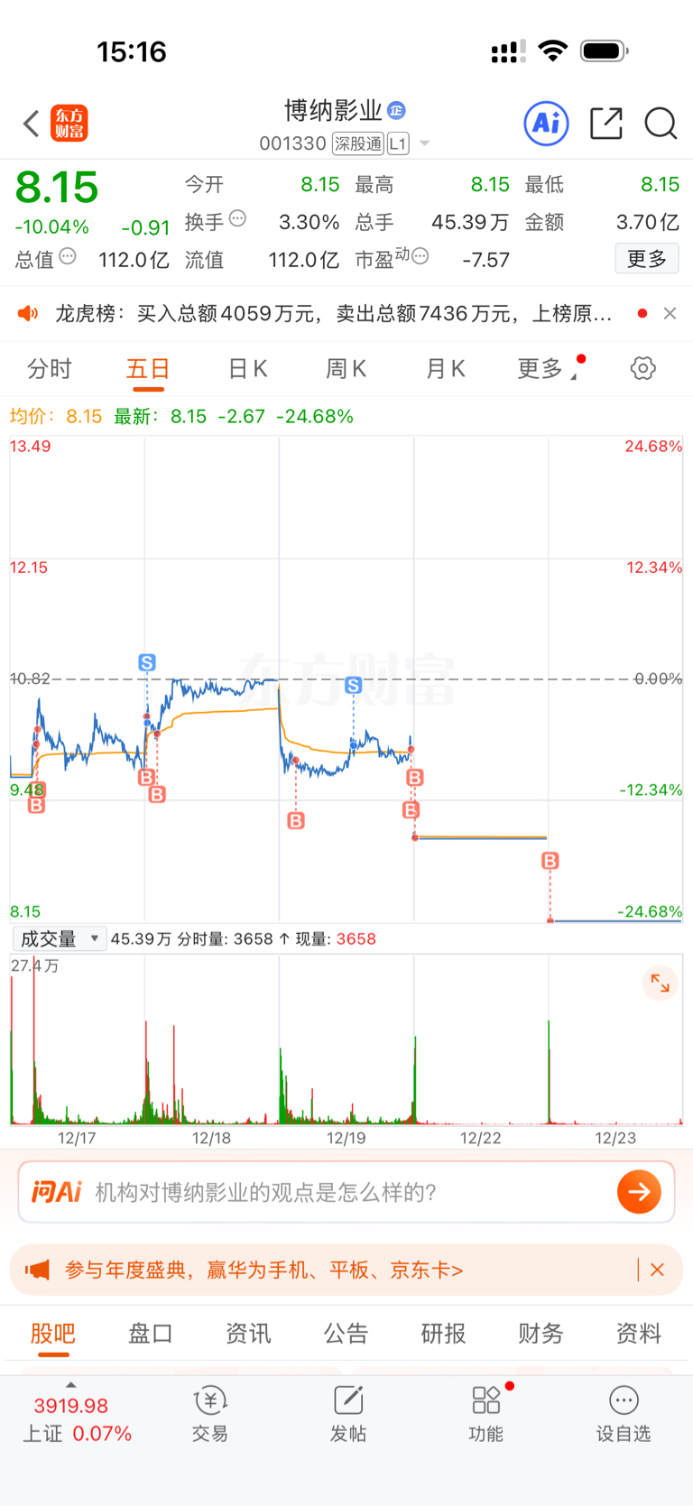 $博纳影业(SZ001330)$ 出不去那就同归于尽 谁也别想好,我出不去广主力,你也别想出去