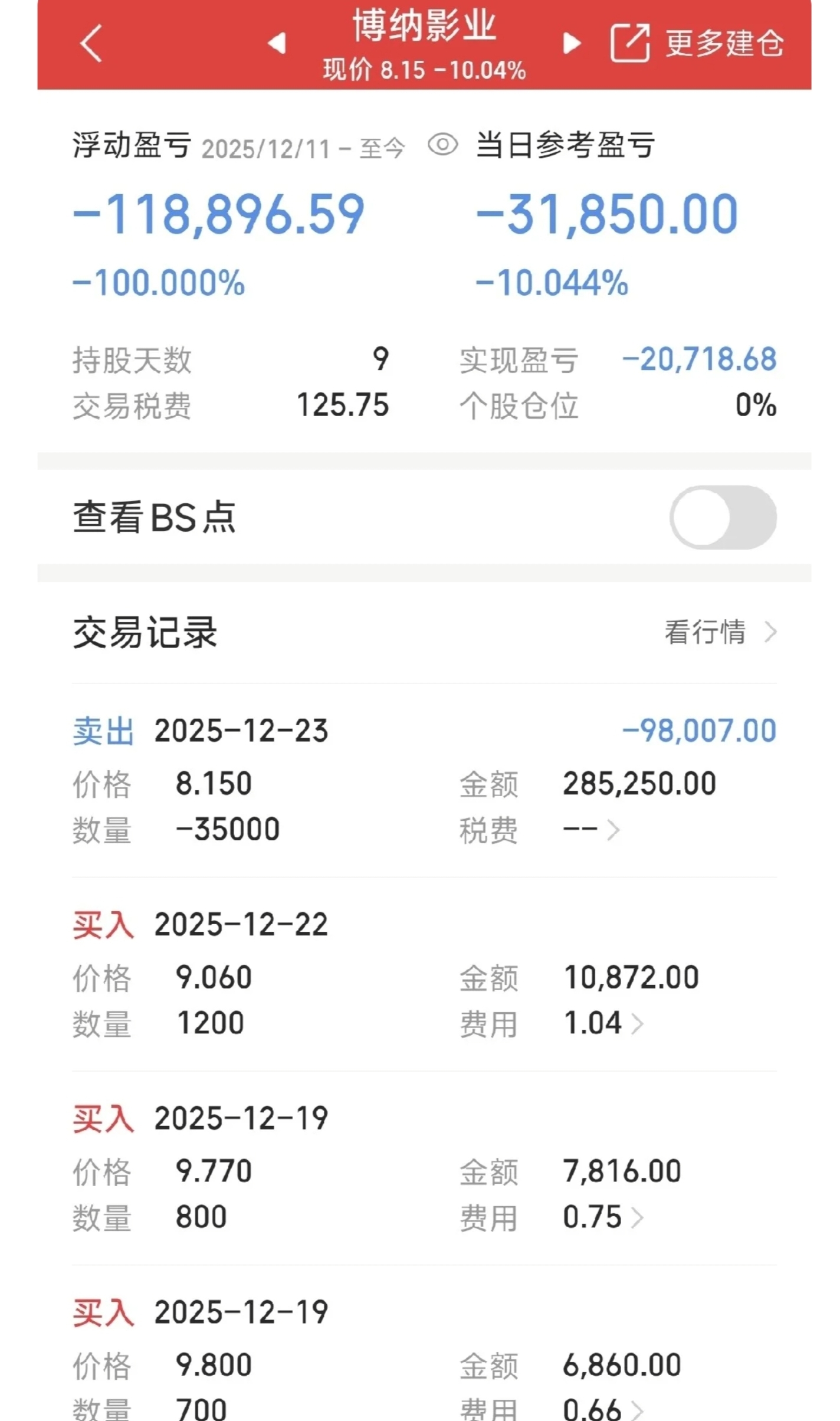 $博纳影业(SZ001330)$ $龙洲股份(SZ002682)$ #晒单全纪实# $永辉超市(SH601933)$ 很多散户没多少钱,拿着全部的积蓄,追涨杀跌,赚了舍不得走,亏了也舍不得走。结果辛辛苦苦的血汗钱都在股市亏光了。牛市追涨杀跌也不可能赚到钱的,日赚10%者很多,月赚10%者很少!赚钱没那么简单的,不然股市门你都进不来!建议先拿小资金多练练,练不出来就找个厂好好上班!