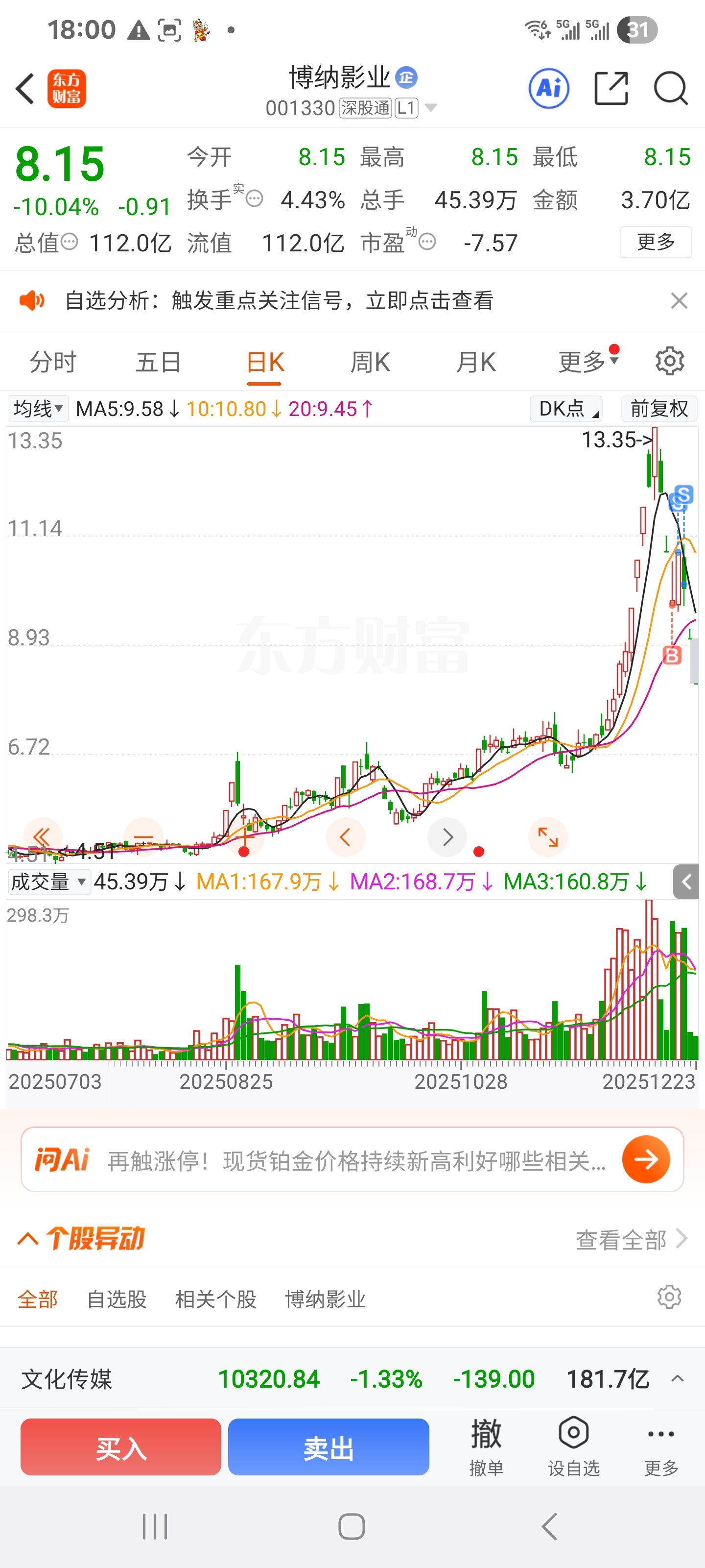 $博纳影业(SZ001330)$ 差点被你含住,真是后背发凉,这是什么庄嘛,要命