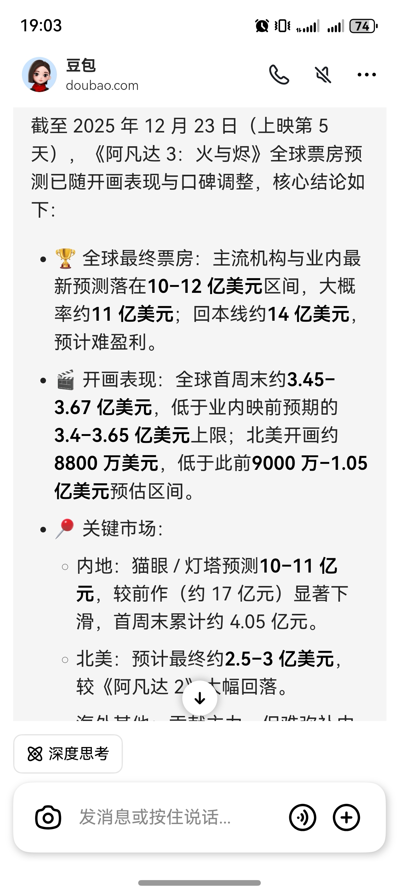 $博纳影业(SZ001330)$ 终于找到五连跌的原因了,之前大涨是因为博阿凡达3给博纳带来的盈利预期,现在结果是不仅没有盈利,而且博纳会因为投资阿凡达3造成更大亏损