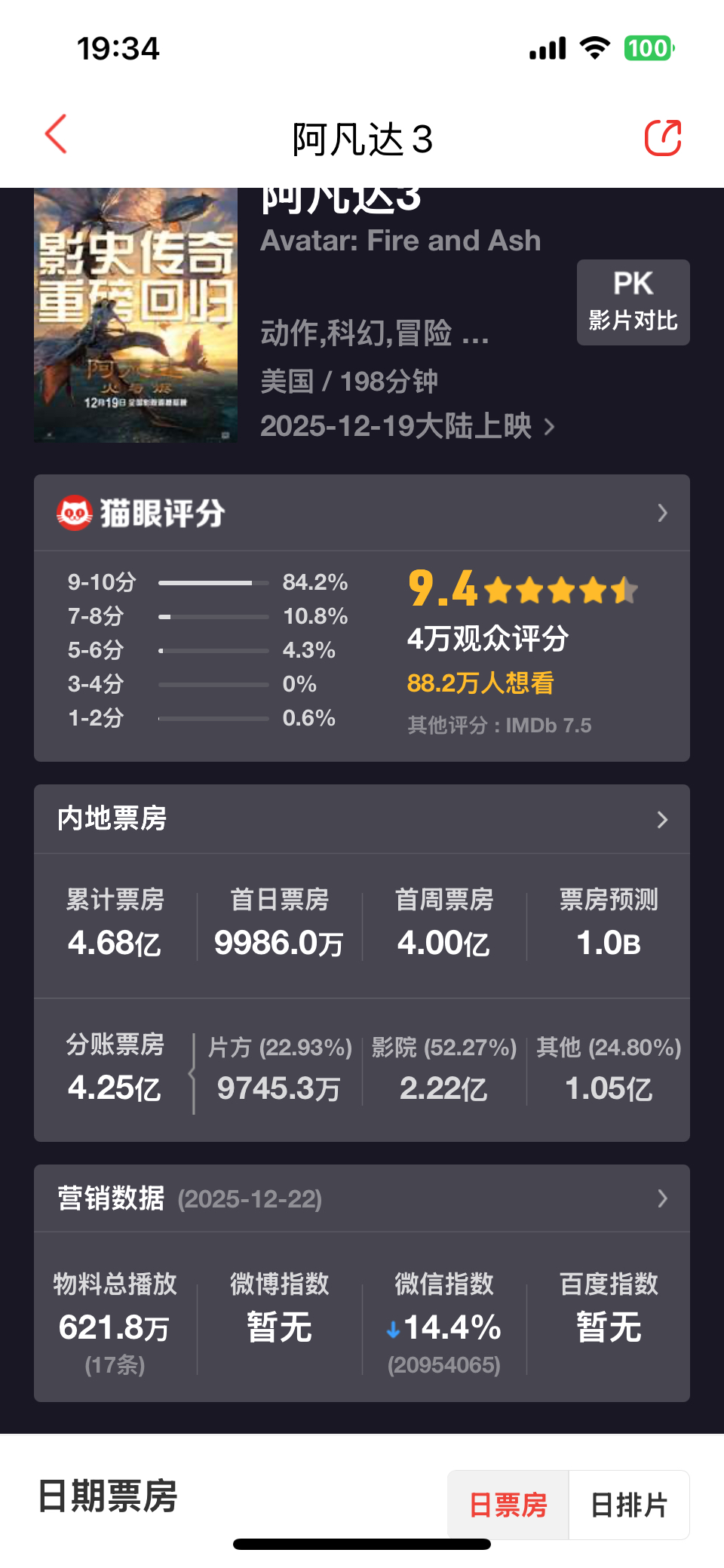 $博纳影业(SZ001330)$ 今天第五天,到现在为止4.7亿。第一周票房肯定超过5亿,而阿凡达2第一周才3.99亿。明明国内票房超过阿凡达2,不知道为什么评估总票房11亿???后面圣诞节,元旦,春节,电影又不可能下档,票房应该会突破20亿的!