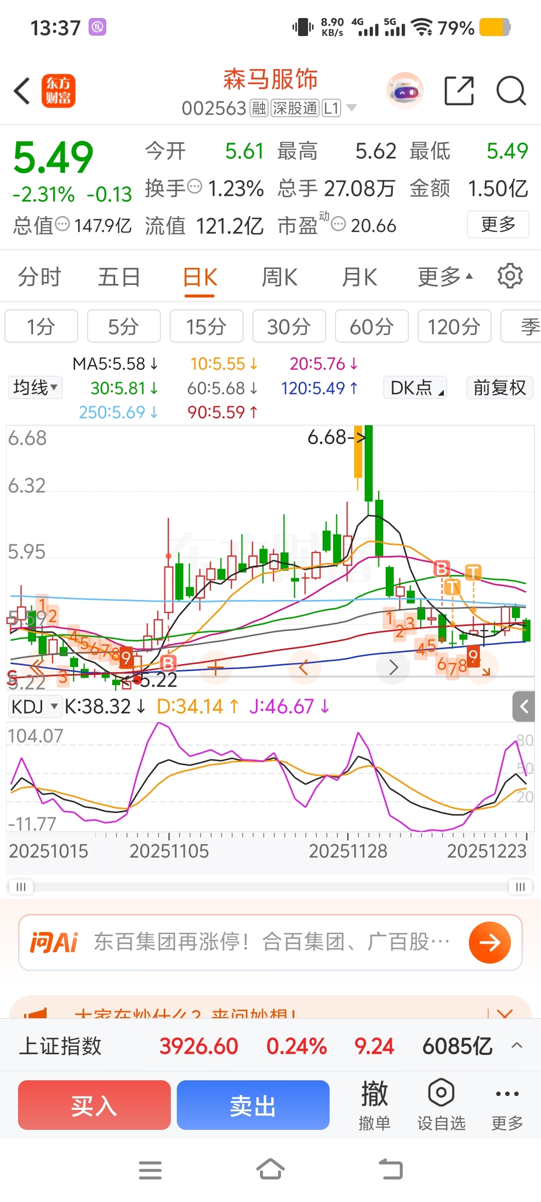 至少这边还有涨上去,森马可是只有挂人下跌
