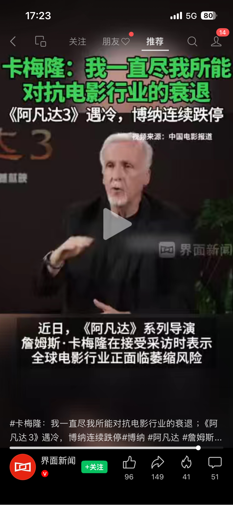 $博纳影业(SZ001330)$ 觉得卡梅隆其实蛮可怜的,他真不是为了钱!就像横刀立马,对抗根本不可能打赢游戏和短视频一样。