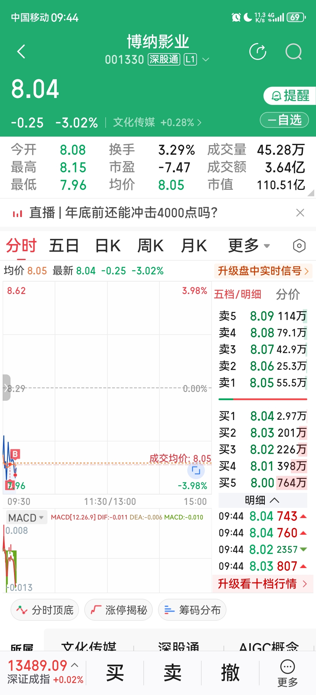 $博纳影业(SZ001330)$ 801继续挺进,坚持!
