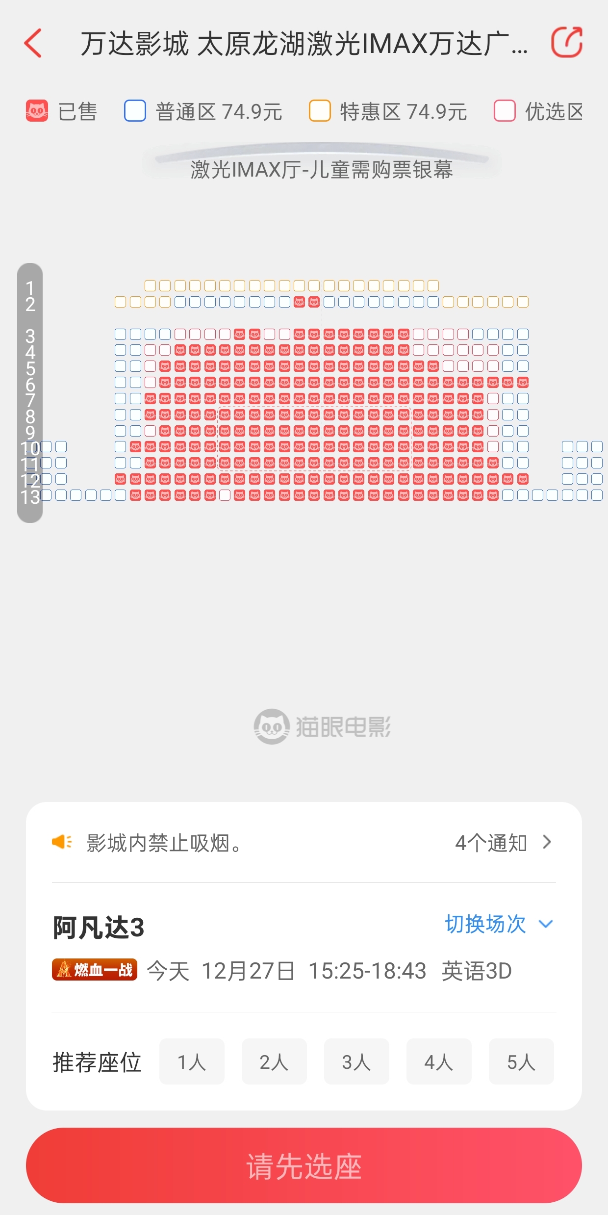 $博纳影业(SZ001330)$ 只有边角料的座位了。这里是太原,四线城市。