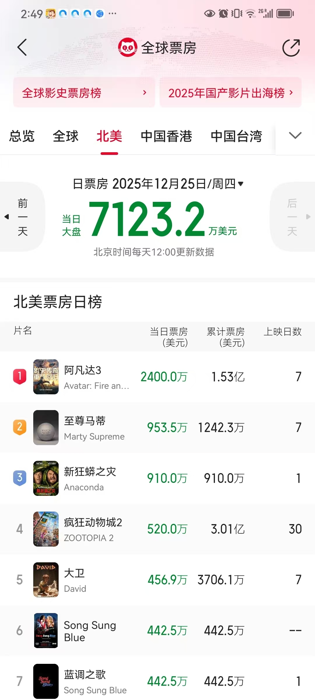 北美的1.53亿美金是星期四的数据,昨天和今天的都没上呢,在北美,阿凡达也是榜一