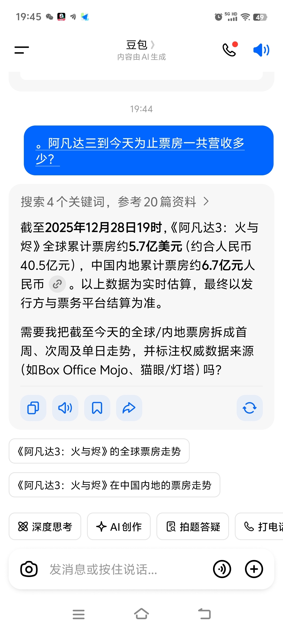 在里面的兄弟们要发财了,全球票房突破40亿了。