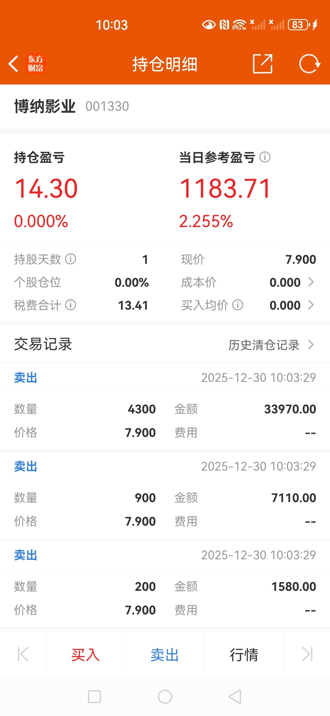 $博纳影业(SZ001330)$ 赚你14.3块钱,让我夜不能寐