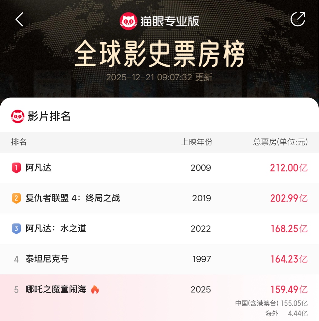 截止目前,中国市场表现不错,元旦都去看《阿凡达3》!