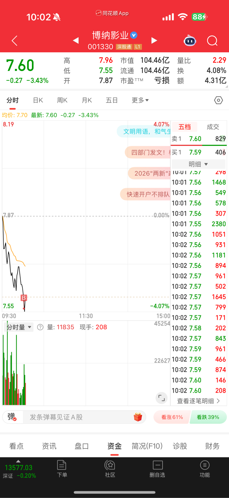 $博纳影业(SZ001330)$ 9.05变8.73的成本了