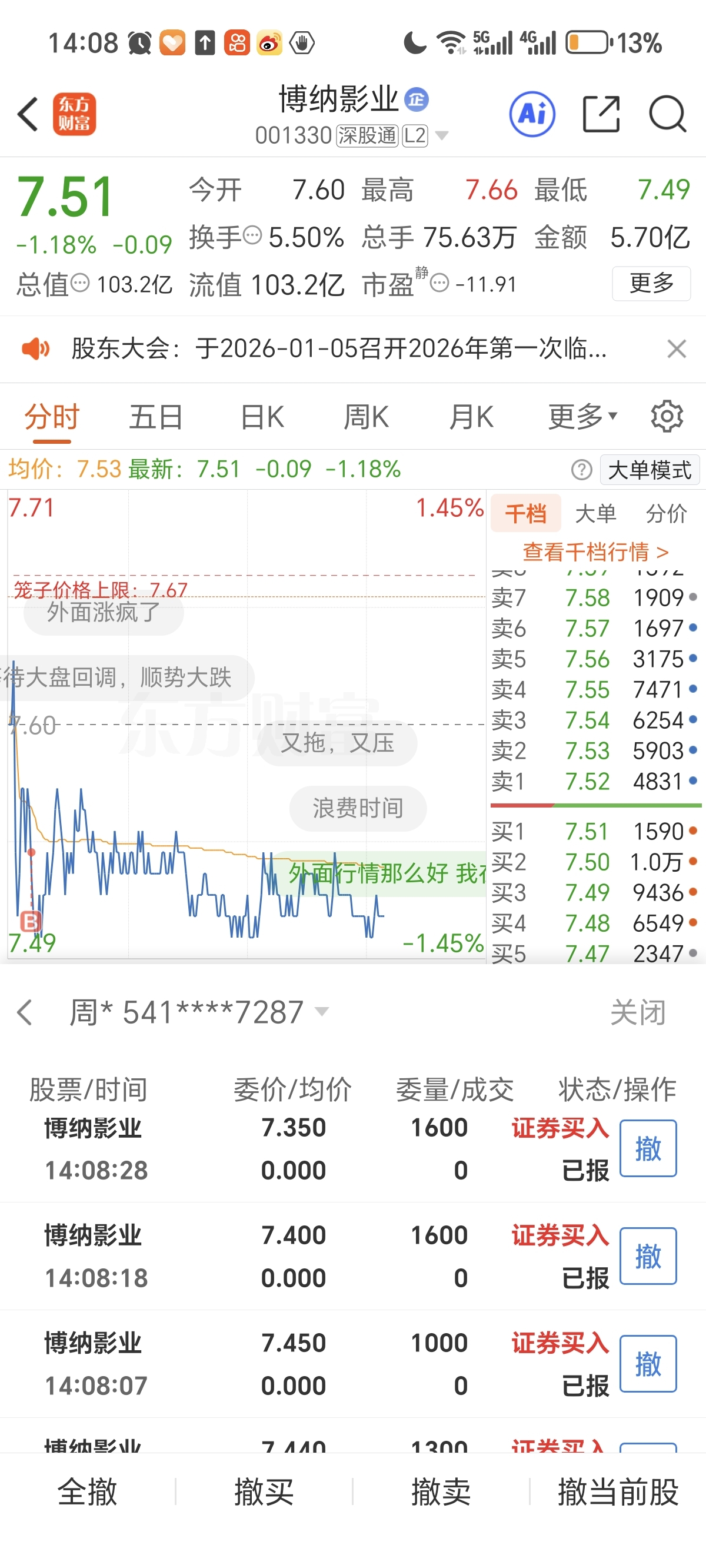 $博纳影业(SZ001330)$ 7.66还能回本吗