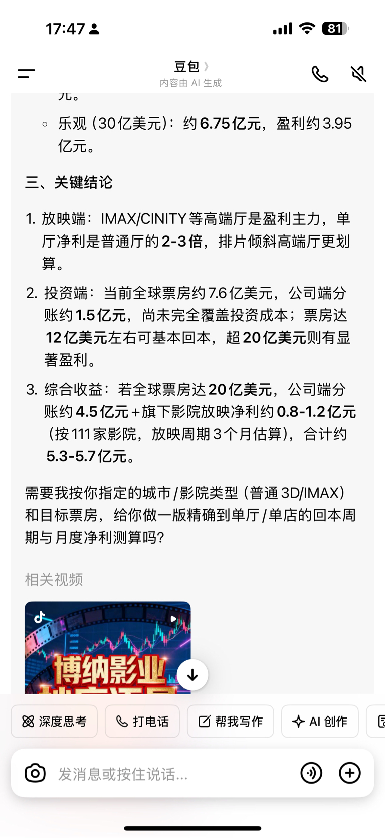 20亿美元票房才只能赚5亿,还不够前面亏的啊12块要多久才能回本,早割肉去买航天