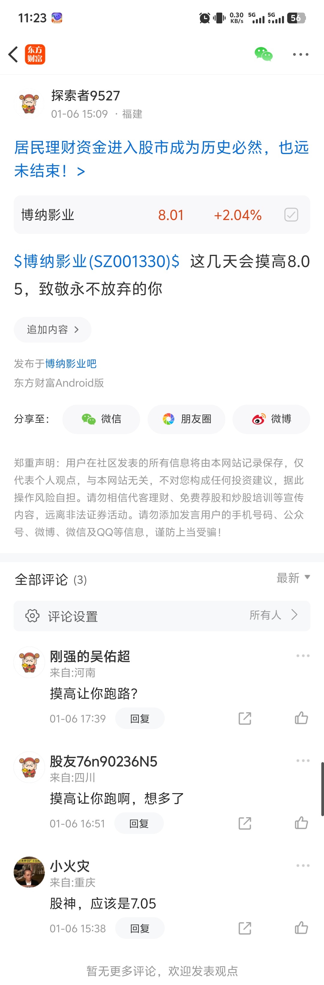 温馨提示: 1.根据《证券法》规定,禁止编造、传播虚假信息或者误导性信息,扰乱证券市场;2.用户在本社区发表的所有资料、言论等仅代表个人观点,与本网站立场无关,不对您构成任何投资建议。用户应基于自己的独立判断,自行决定证券投资并承担相应风险。《东方财富社区管理规定》