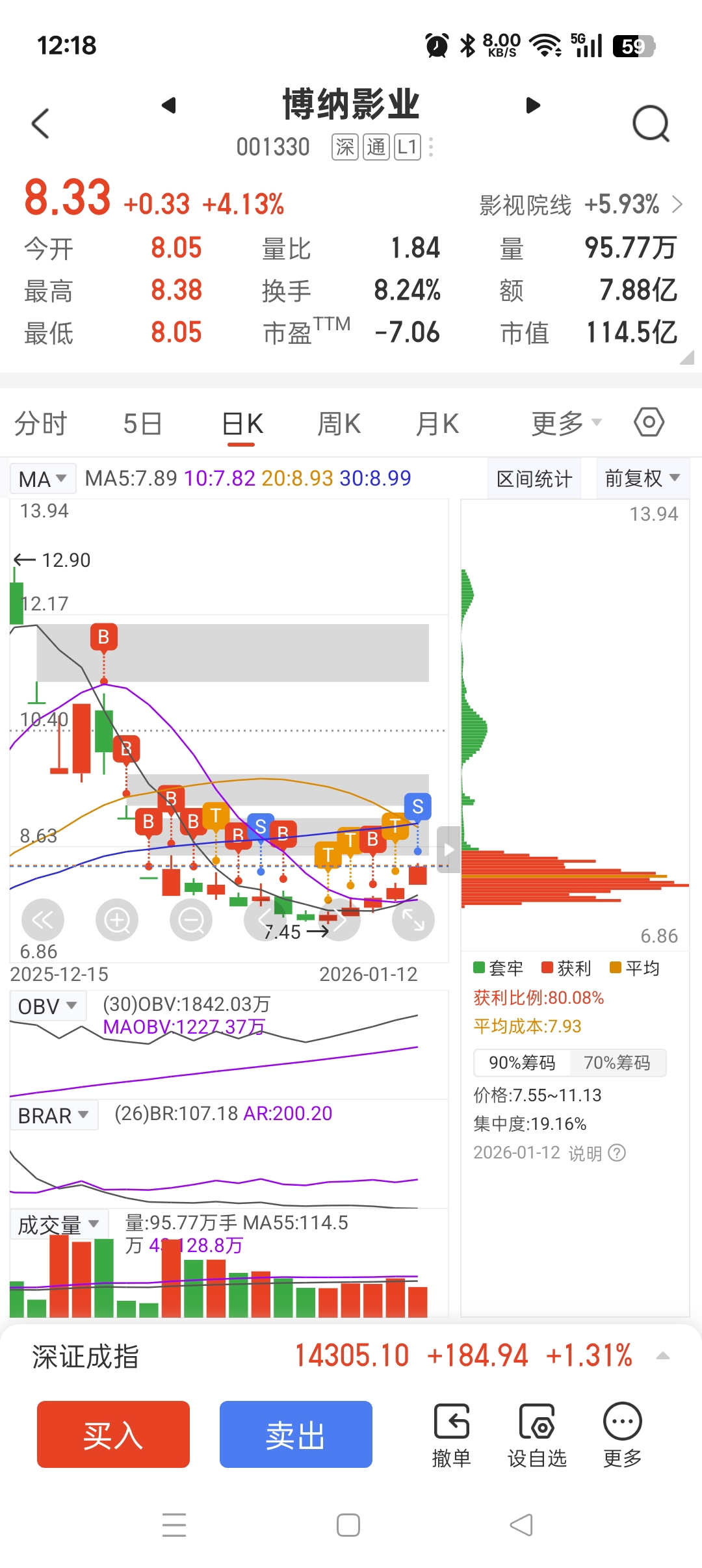 $博纳影业(SZ001330)$ 这个杂毛清仓了 亏了几个点