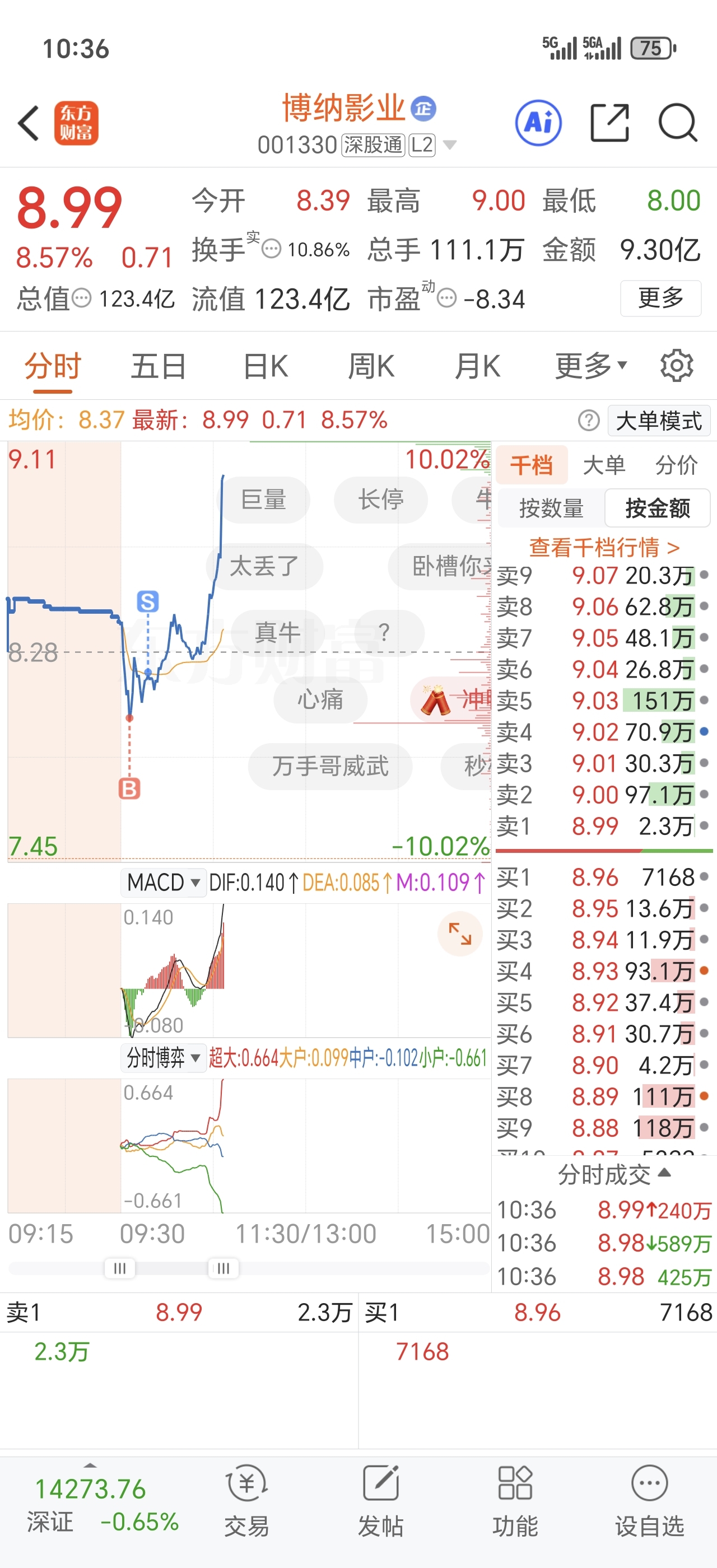 $博纳影业(SZ001330)$ 还好,只卖了今天买入的。呜呜呜。