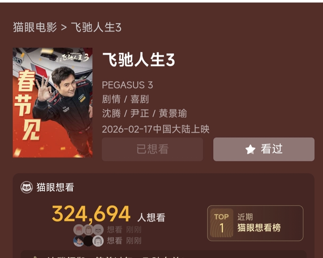 电影飞驰人数32万了,今天主力很努力了差点涨停。大家继续点击呀并转发,给主力加油