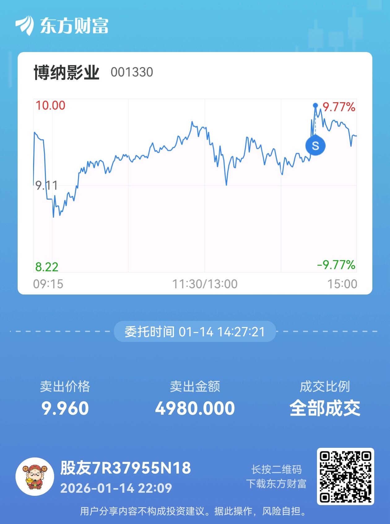 温馨提示: 1.根据《证券法》规定,禁止编造、传播虚假信息或者误导性信息,扰乱证券市场;2.用户在本社区发表的所有资料、言论等仅代表个人观点,与本网站立场无关,不对您构成任何投资建议。用户应基于自己的独立判断,自行决定证券投资并承担相应风险。《东方财富社区管理规定》