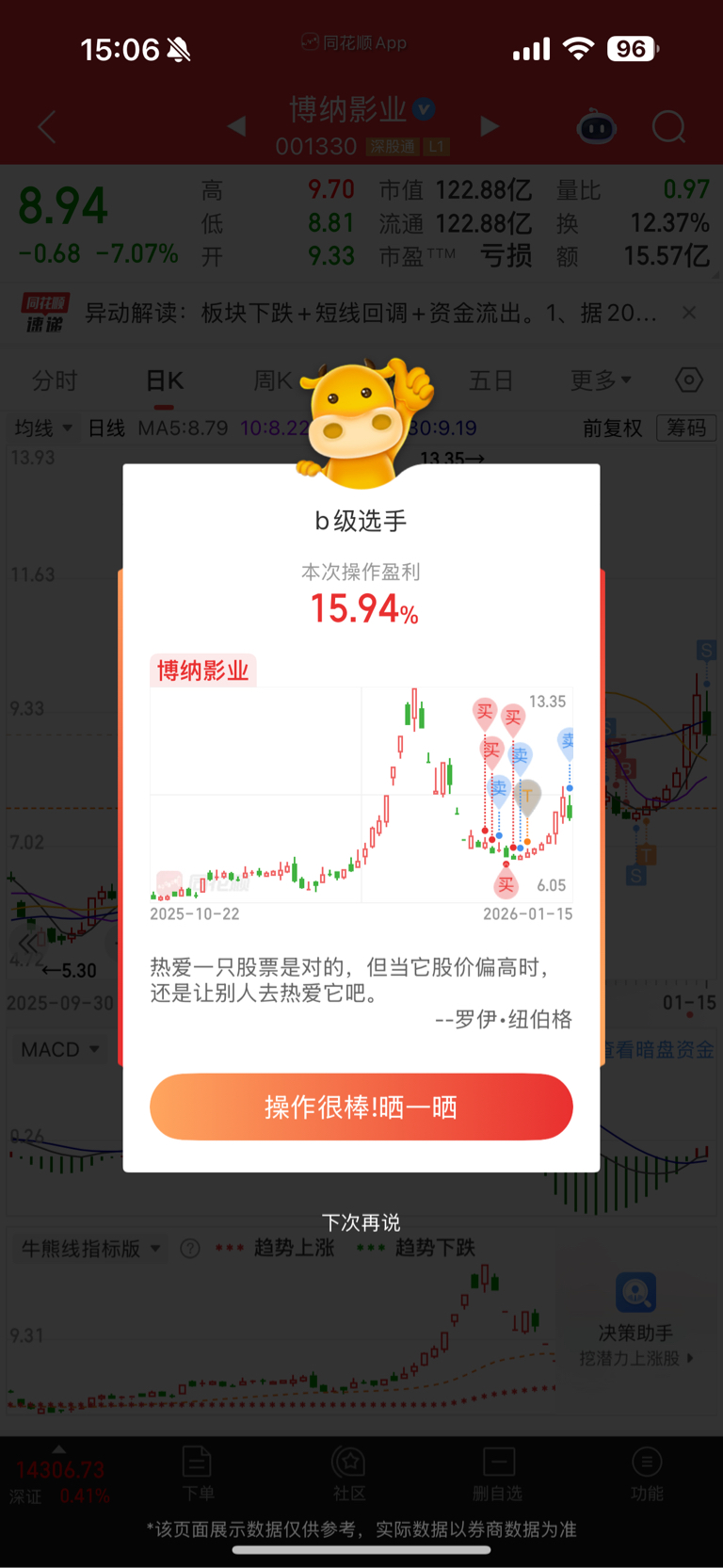 $博纳影业(SZ001330)$ 短期应该要承压了我先走了留下的兄弟们发财