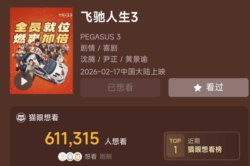 $博纳影业(SZ001330)$ 电影飞驰人生3,破61万再经过今天晚上王牌对王牌特别专辑催化,周一继续高开