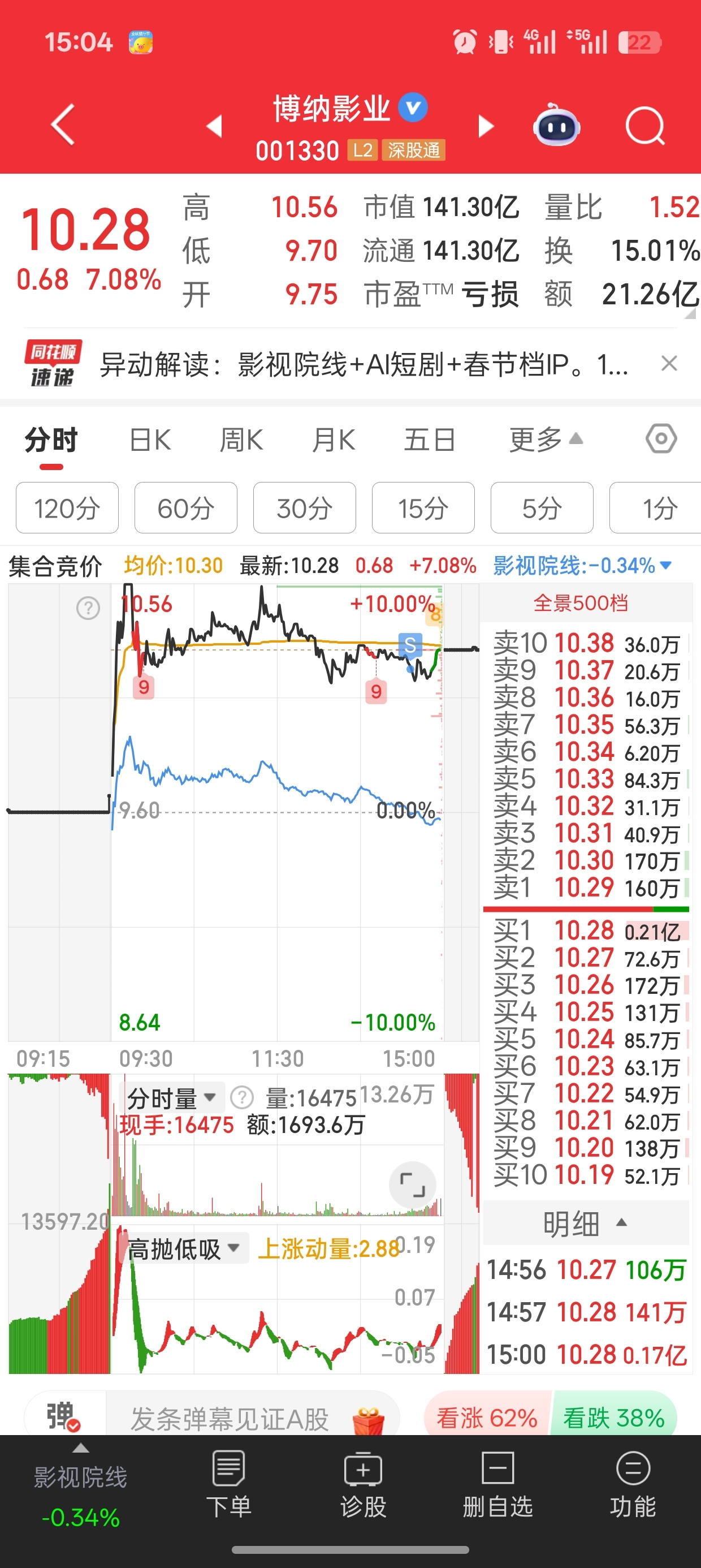 $博纳影业(SZ001330)$ 不信明天还能涨停,先出了