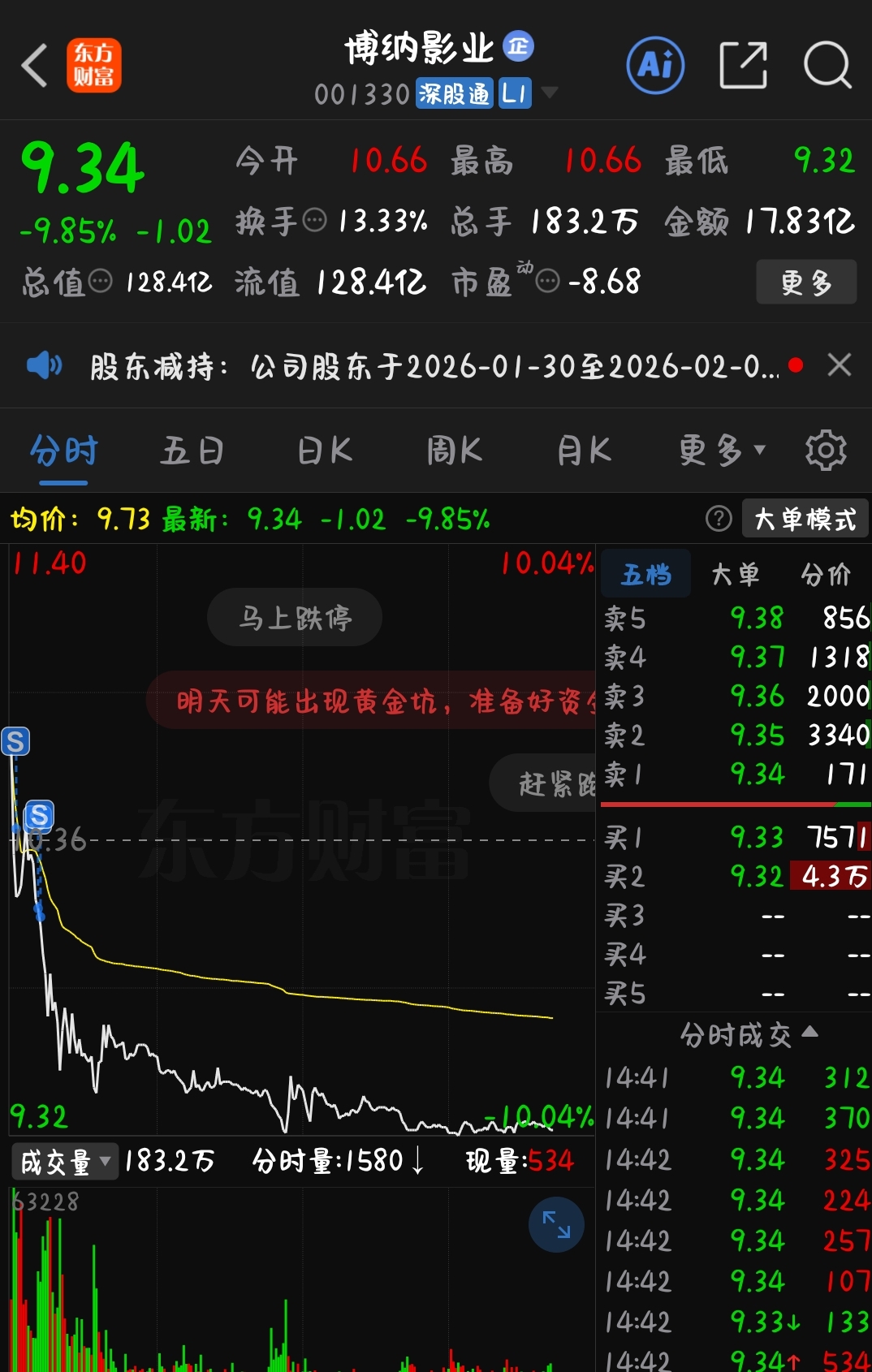 $博纳影业(SZ001330)$ 知道它会跌,亏损股,还好跑得快,换了光伏
