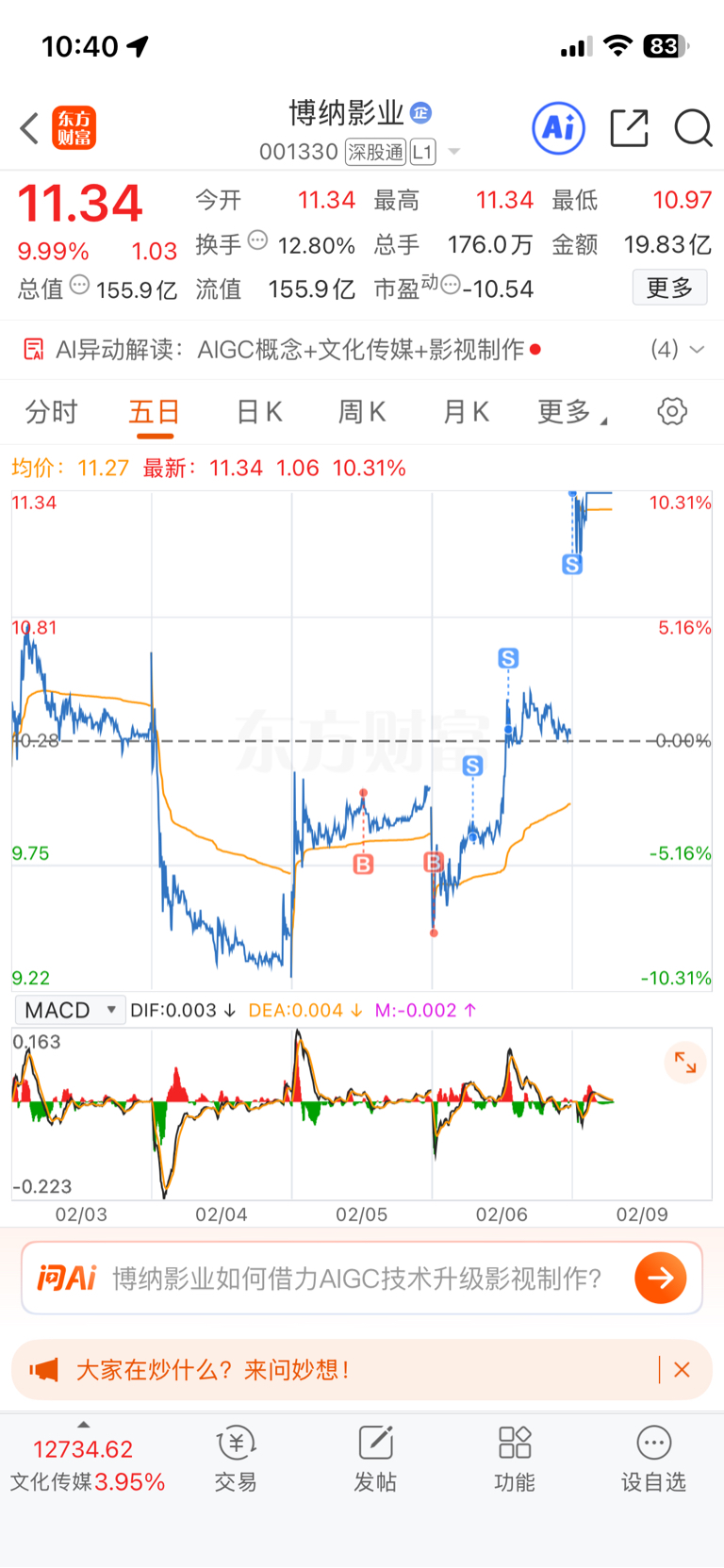 $博纳影业(SZ001330)$ 清仓结束今年,这两天操作不错 明年见