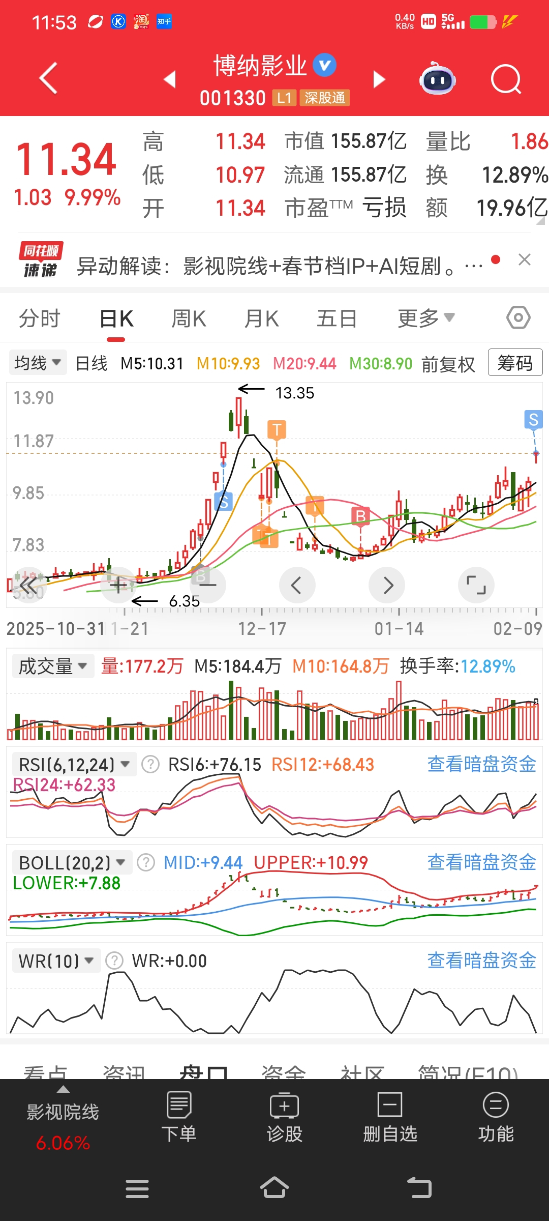 $博纳影业(SZ001330)$ 满仓过山车到现在两个月,我是什么都经历了,盈利56%该走了,量化控盘 情绪好的话后面会破前高,反之能跑多快跑多快,祝留下的兄弟发财把量化挂山顶.