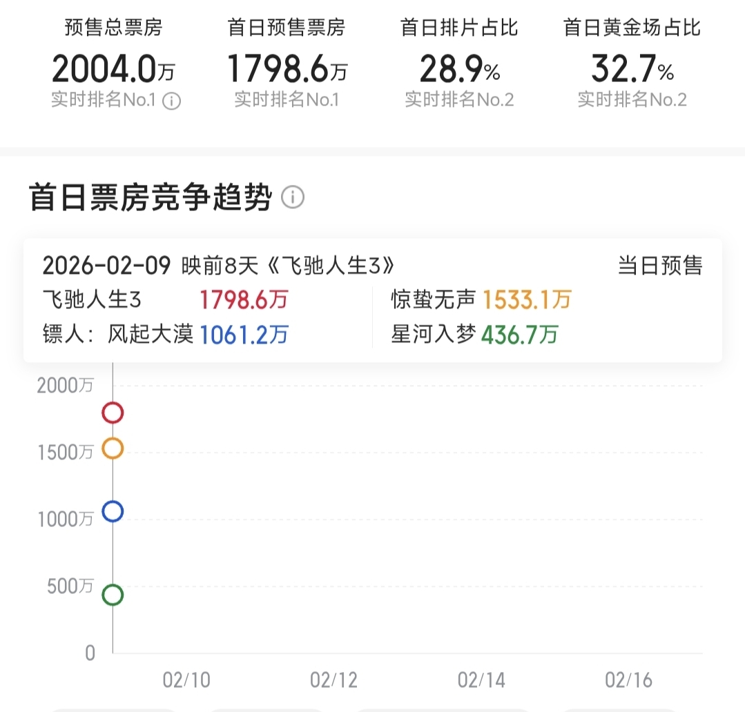 电影飞驰人生3最新预售票房已破2千万。遥遥领先
