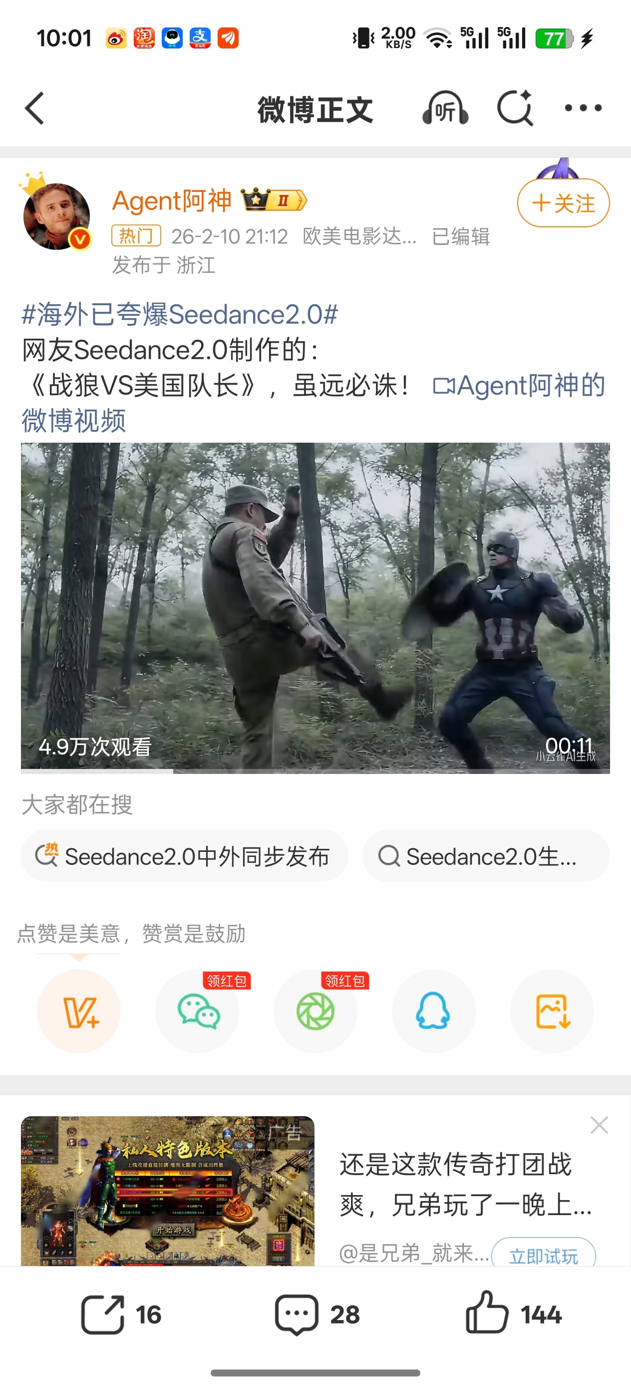 $博纳影业(SZ001330)$ 即梦2.0如果你还没听说过,那外网的热搜seedance2.0你一定能看到。已经有牛人用它制作出战狼大战美国队长了