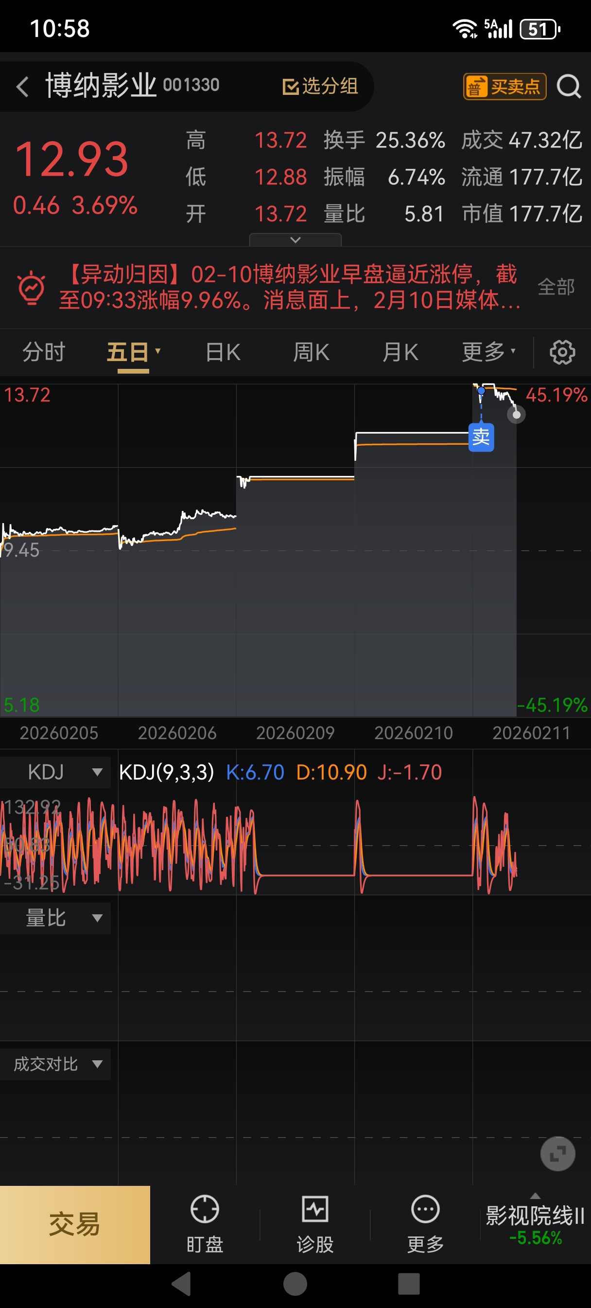 $博纳影业(SZ001330)$ 今天清仓博纳跟中国电影 节后再战
