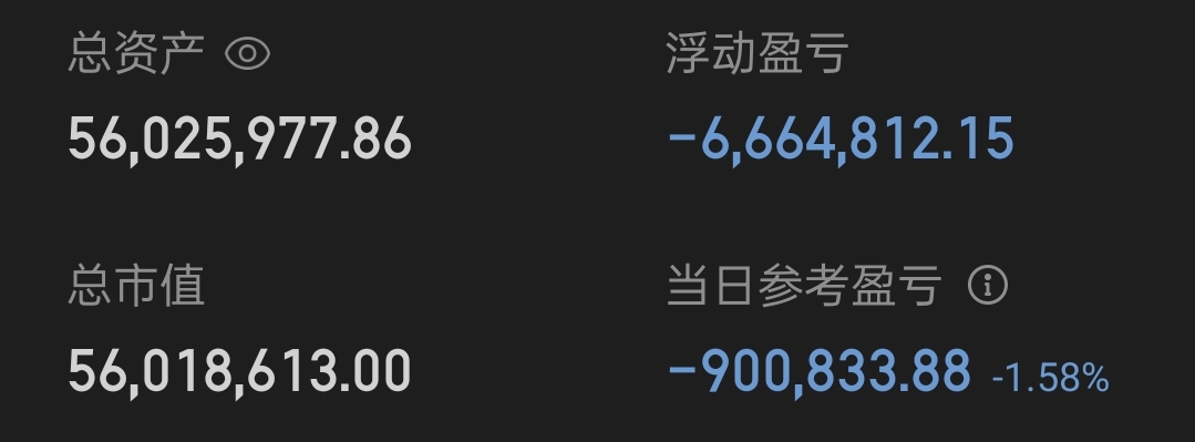 少帅日记;初始资产:7000万;今日战况:-1.58%;