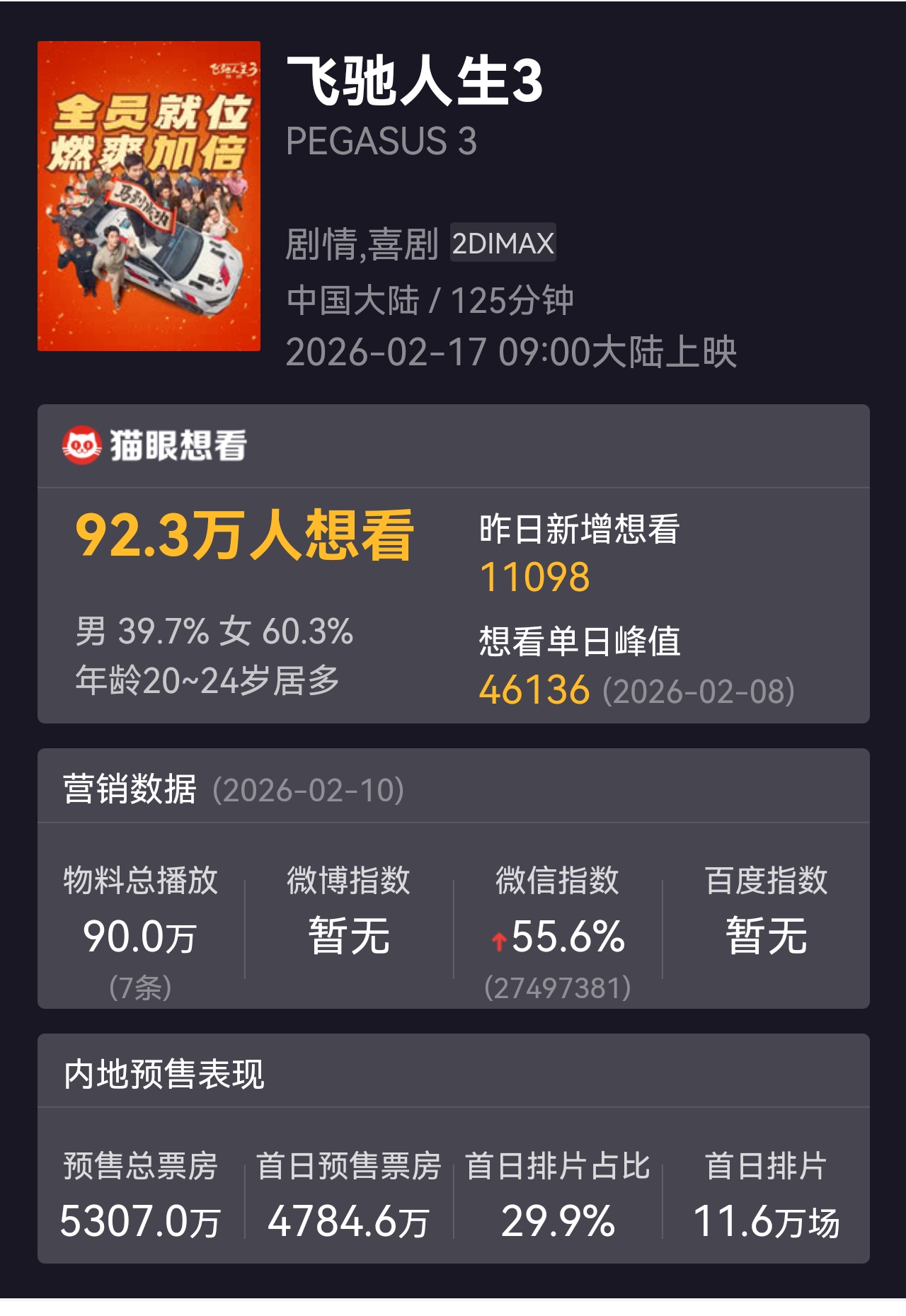 $博纳影业(SZ001330)$ 已经预售遥遥领先,5300万啦