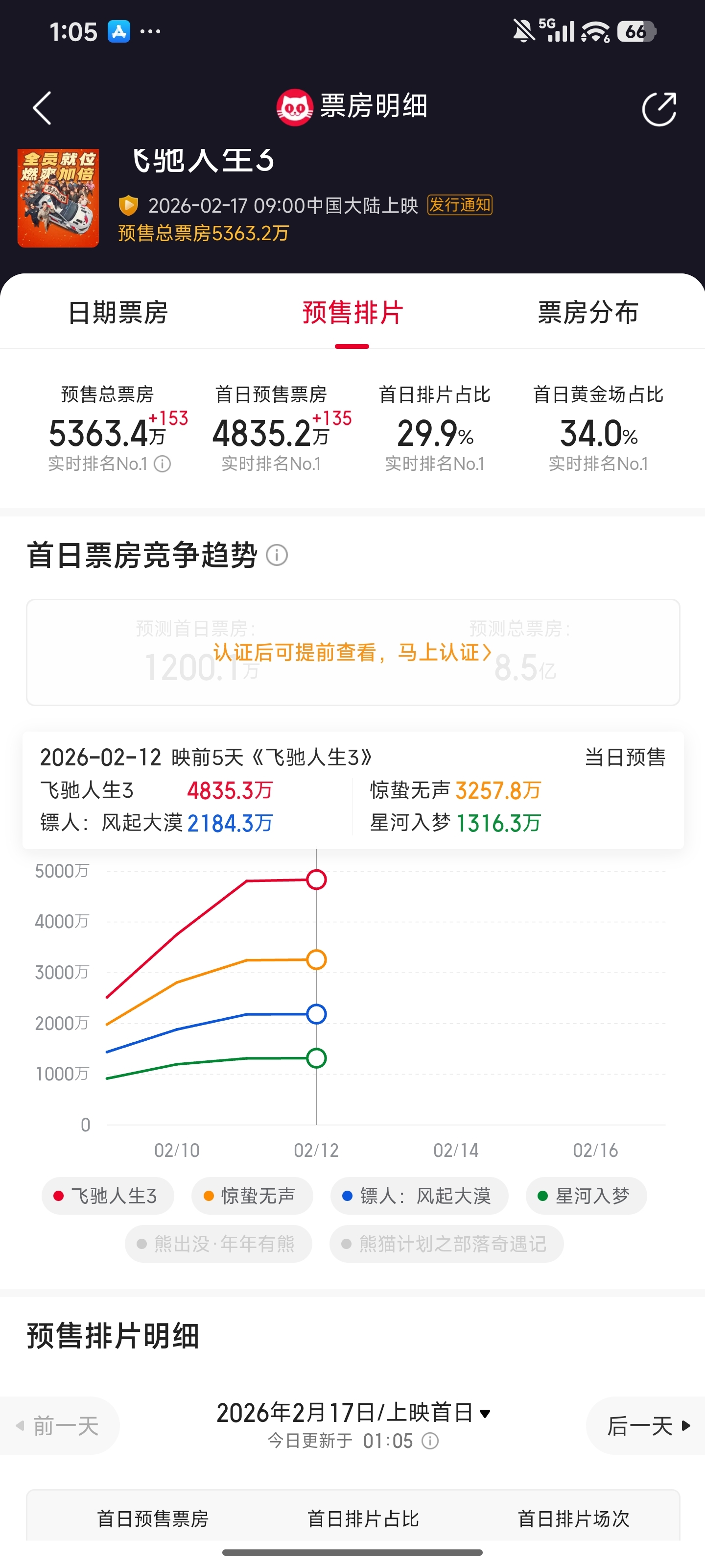 最大的利好来了。同志们见附图,到今晚24点为止,飞驰人生3的预售票房领先幅度开始
