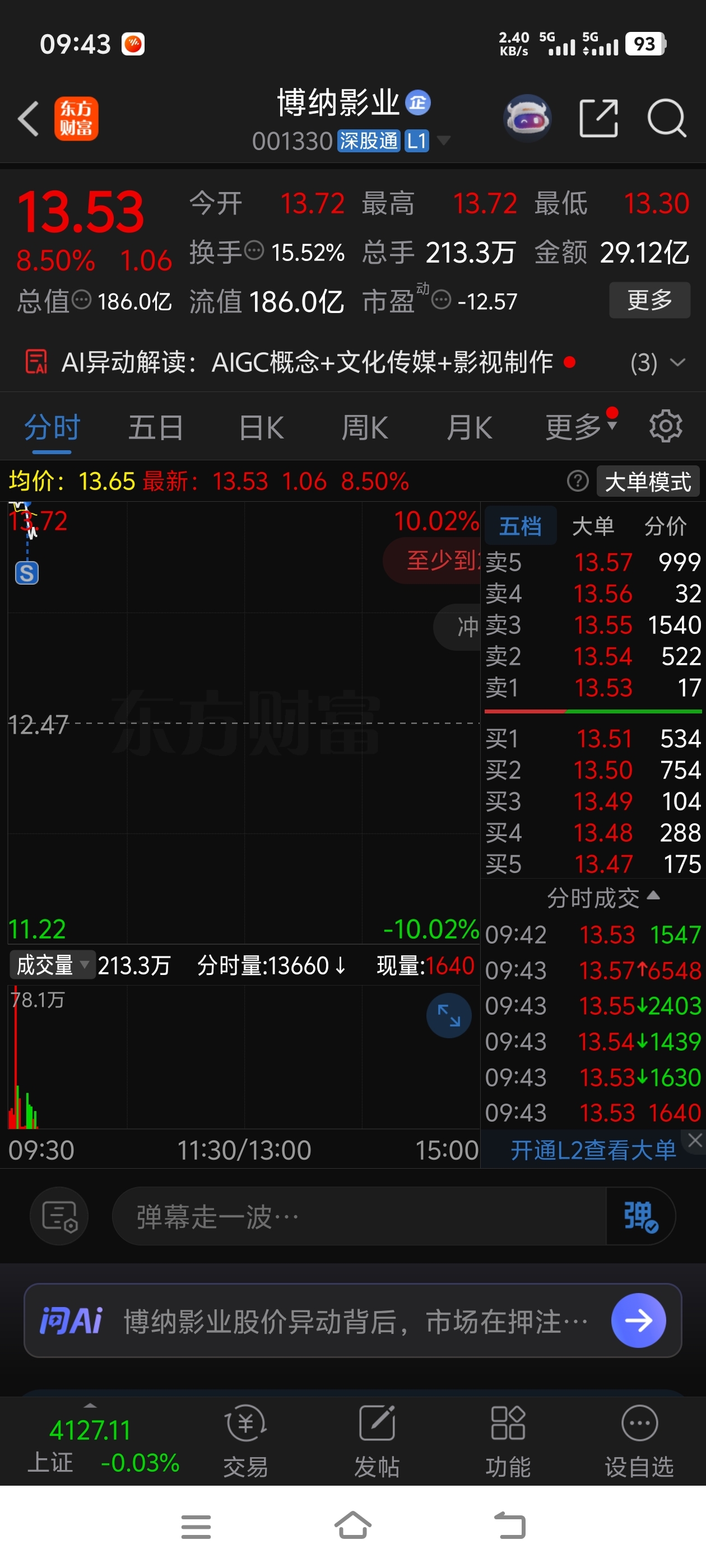 $博纳影业(SZ001330)$
