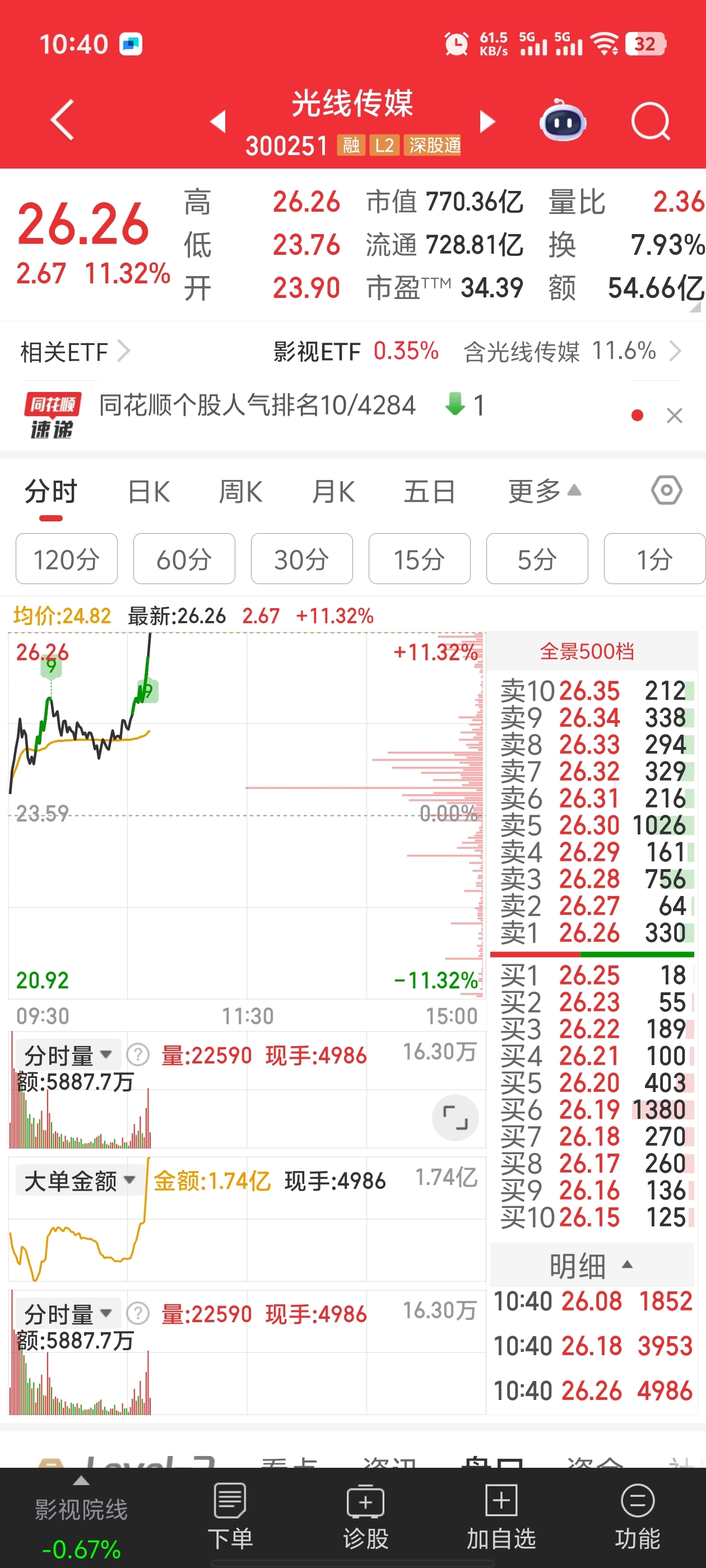 $博纳影业(SZ001330)$ 光线传媒要涨停了