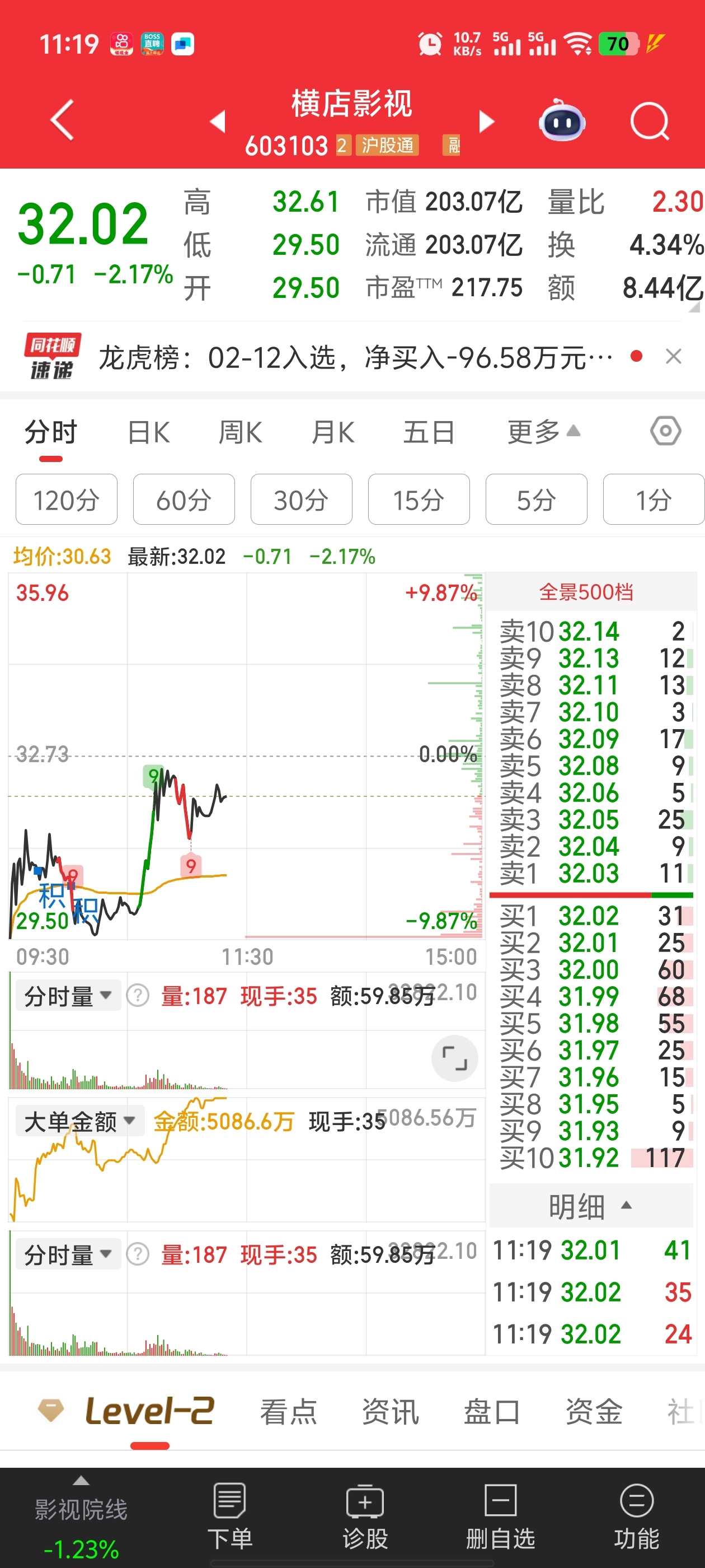 $博纳影业(SZ001330)$ 今天只有电影能逆市看看横店走势低吸