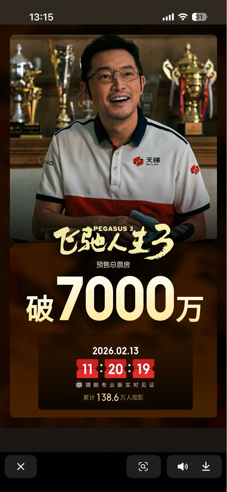 $博纳影业(SZ001330)$ 中午已经预售破7000万,春节档第一