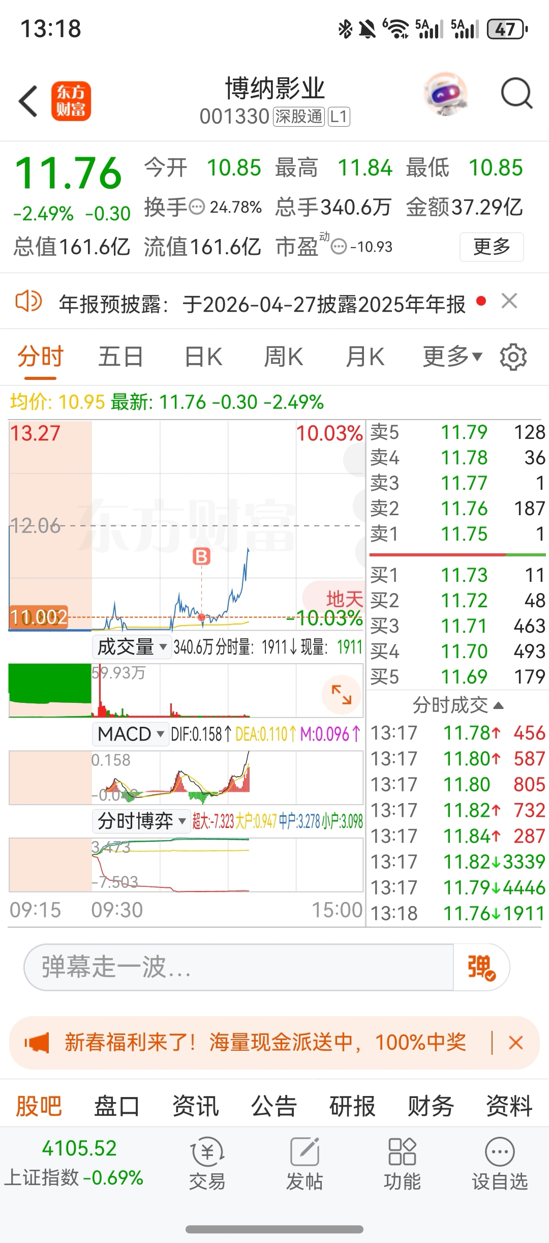 $博纳影业(SZ001330)$ 算是抄底成功么
