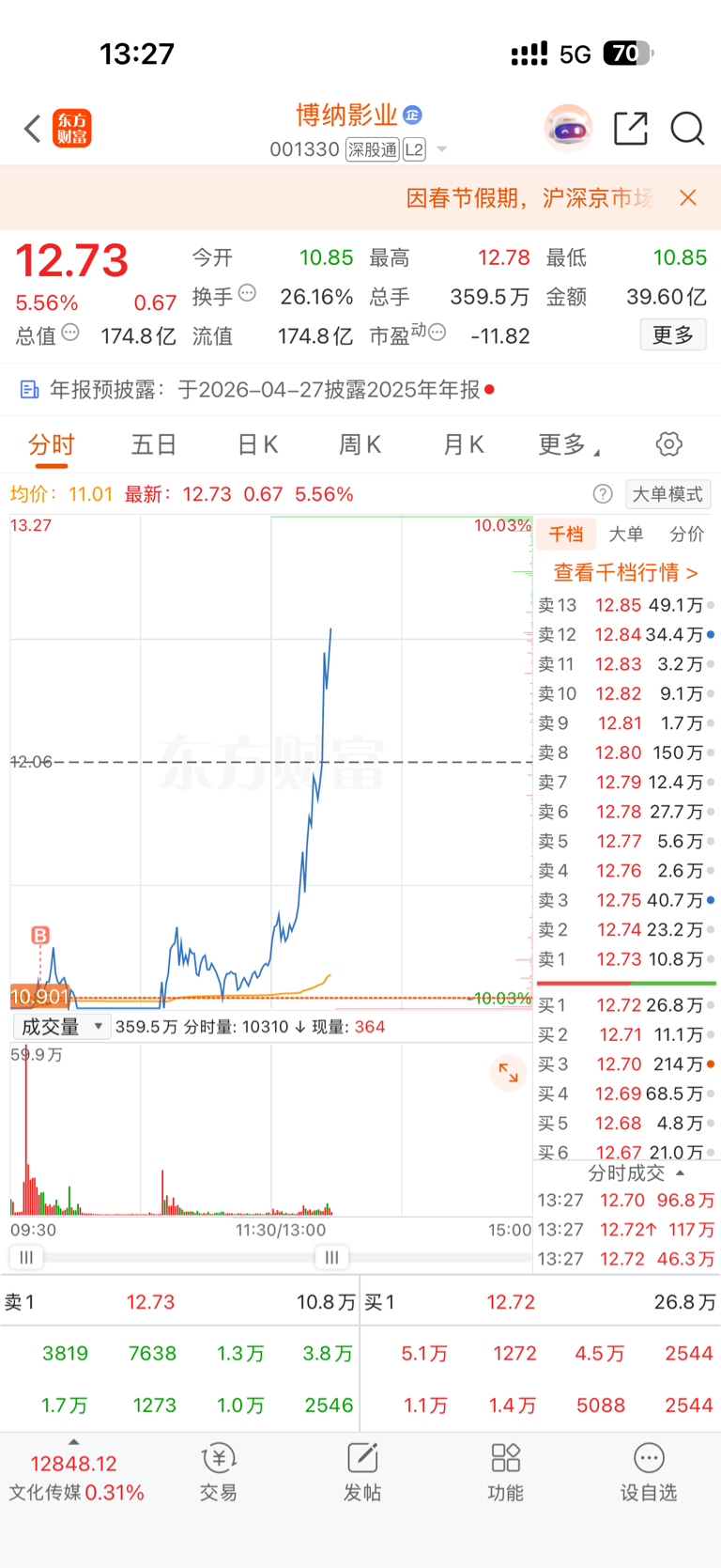 $博纳影业(SZ001330)$ 真刺激
