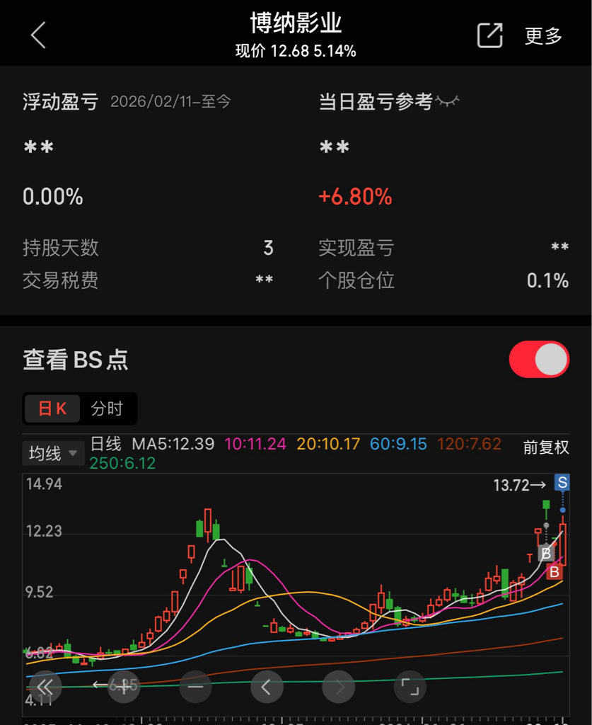 $博纳影业(SZ001330)$ 感谢主力,赚个饭钱出来了