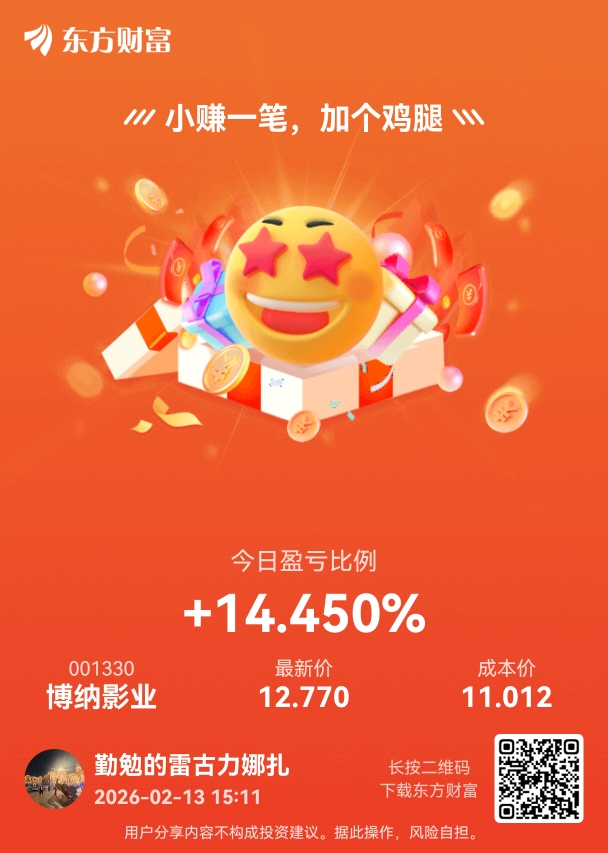 $博纳影业(SZ001330)$ 吃了三合板,又进来吃了14个点,大年初一就去看十遍电影