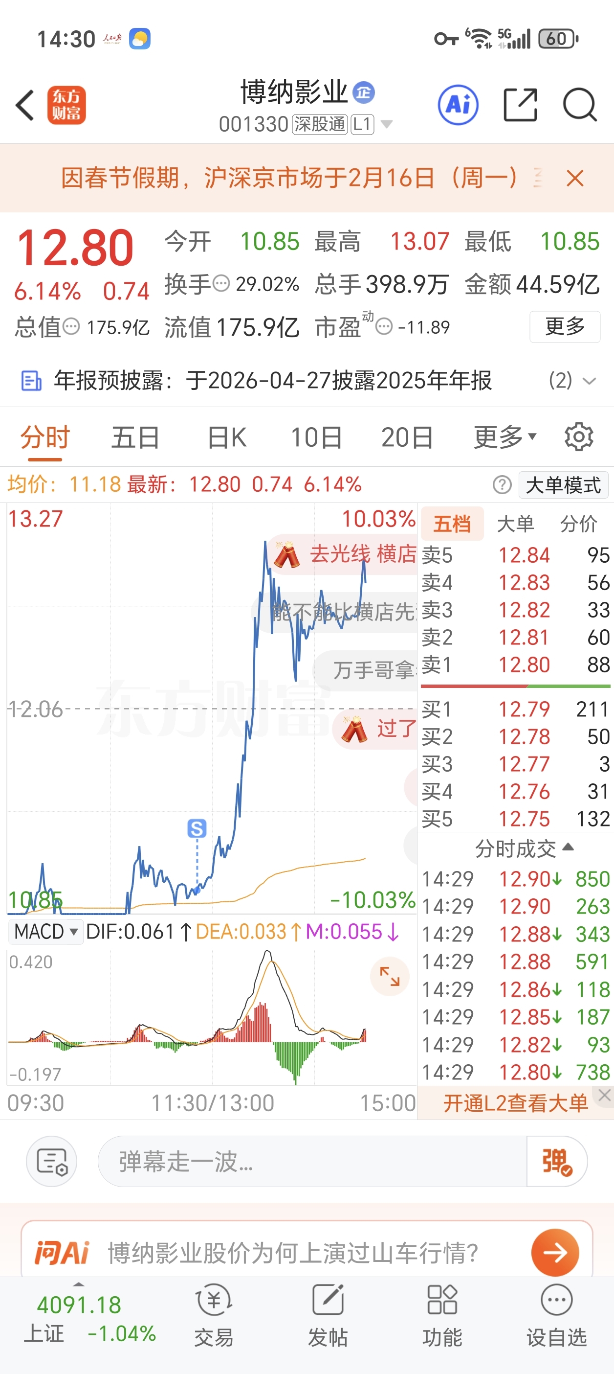 $博纳影业(SZ001330)$