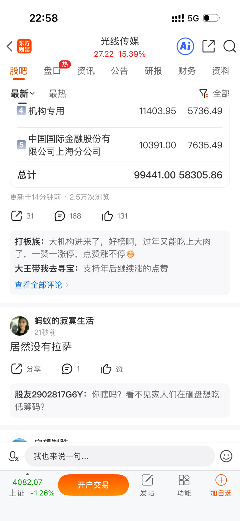 $博纳影业(SZ001330)$ 光线传媒龙虎盘人气没有博纳影业高,差太多了,