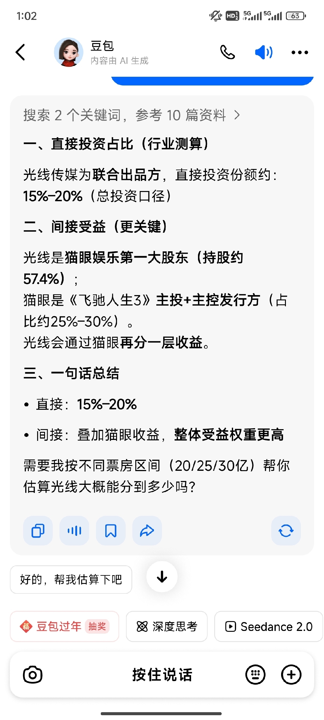 $博纳影业(SZ001330)$ 光线传媒和控股公司猫眼主投飞驰人生3