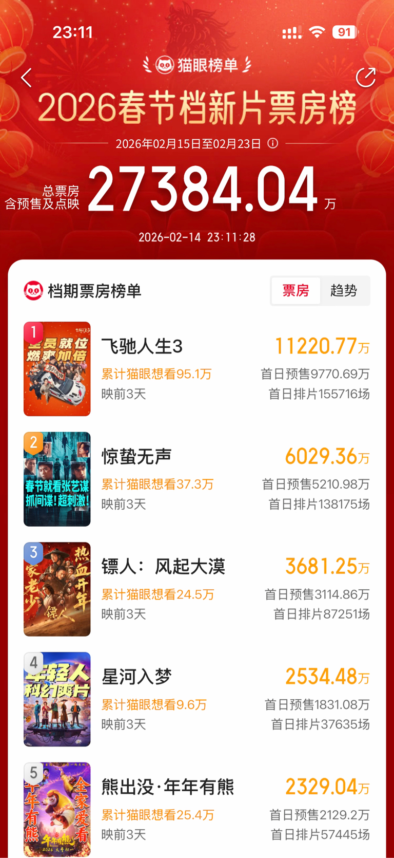 $博纳影业(SZ001330)$ 第2-4名加起都没飞3多
