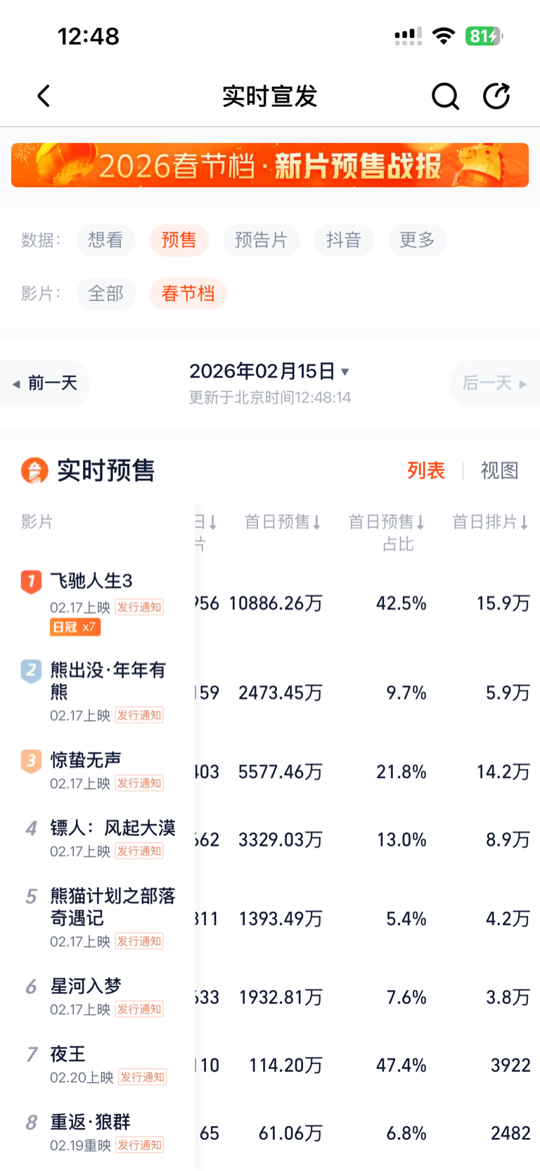 $博纳影业(SZ001330)$ 只要口碑不崩塌,保底45-50亿票房,对应博纳市值翻倍。大家快买票看。首日预售炒历史最好,42.5%接近一半,之前不是热辣滚烫抢票房,飞驰2都超45亿了。懂的都懂。