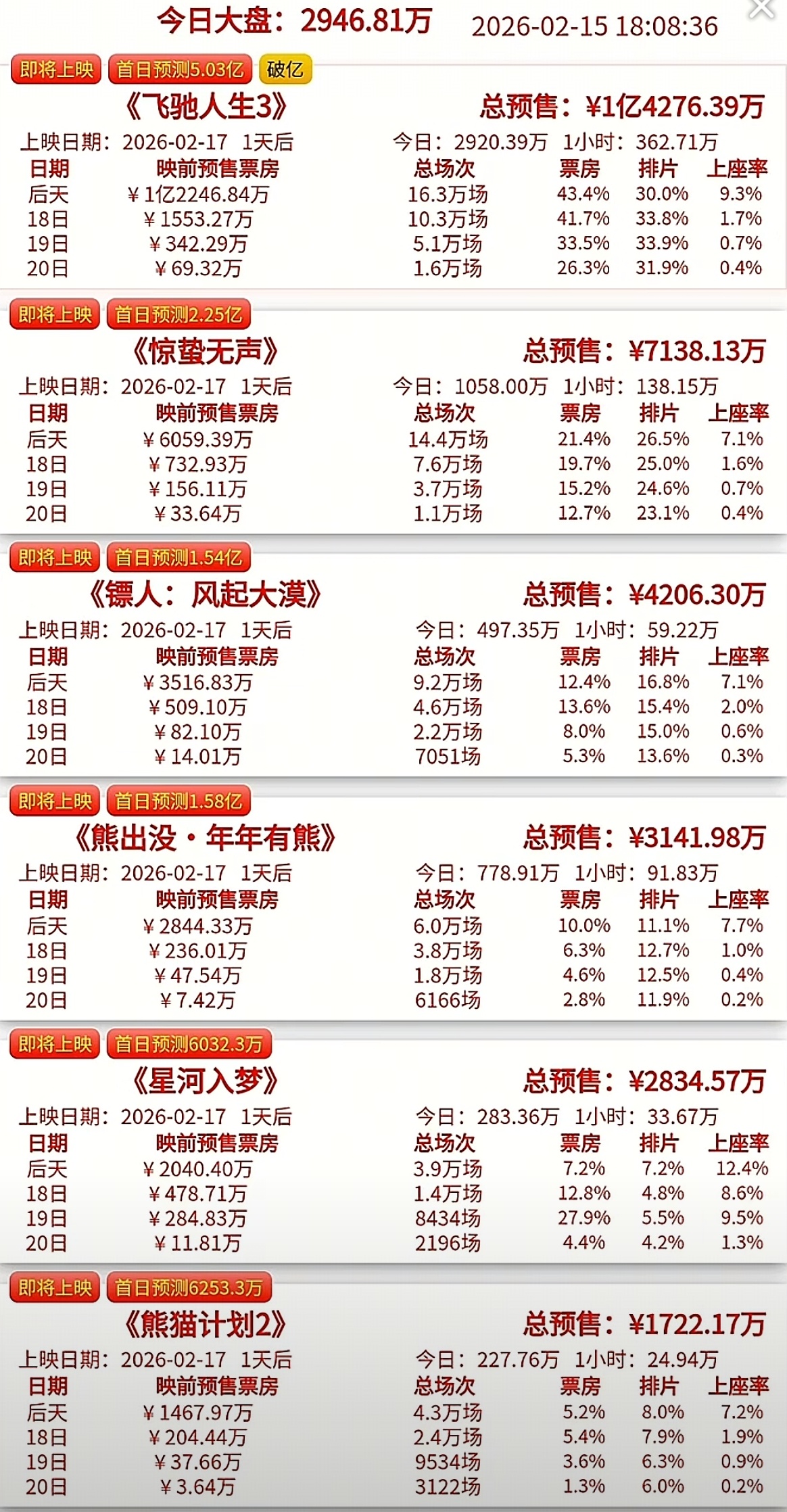 $博纳影业(SZ001330)$ 飞驰人生3实时预售票房,各位股东记得看完后发好评。