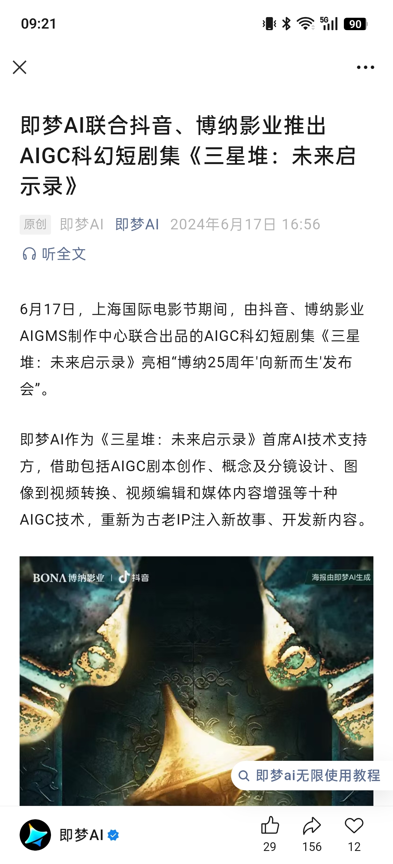 博纳影业与即梦AI的合作远不止于技术采购,而是“内容+技术”的深度共创。双方联合