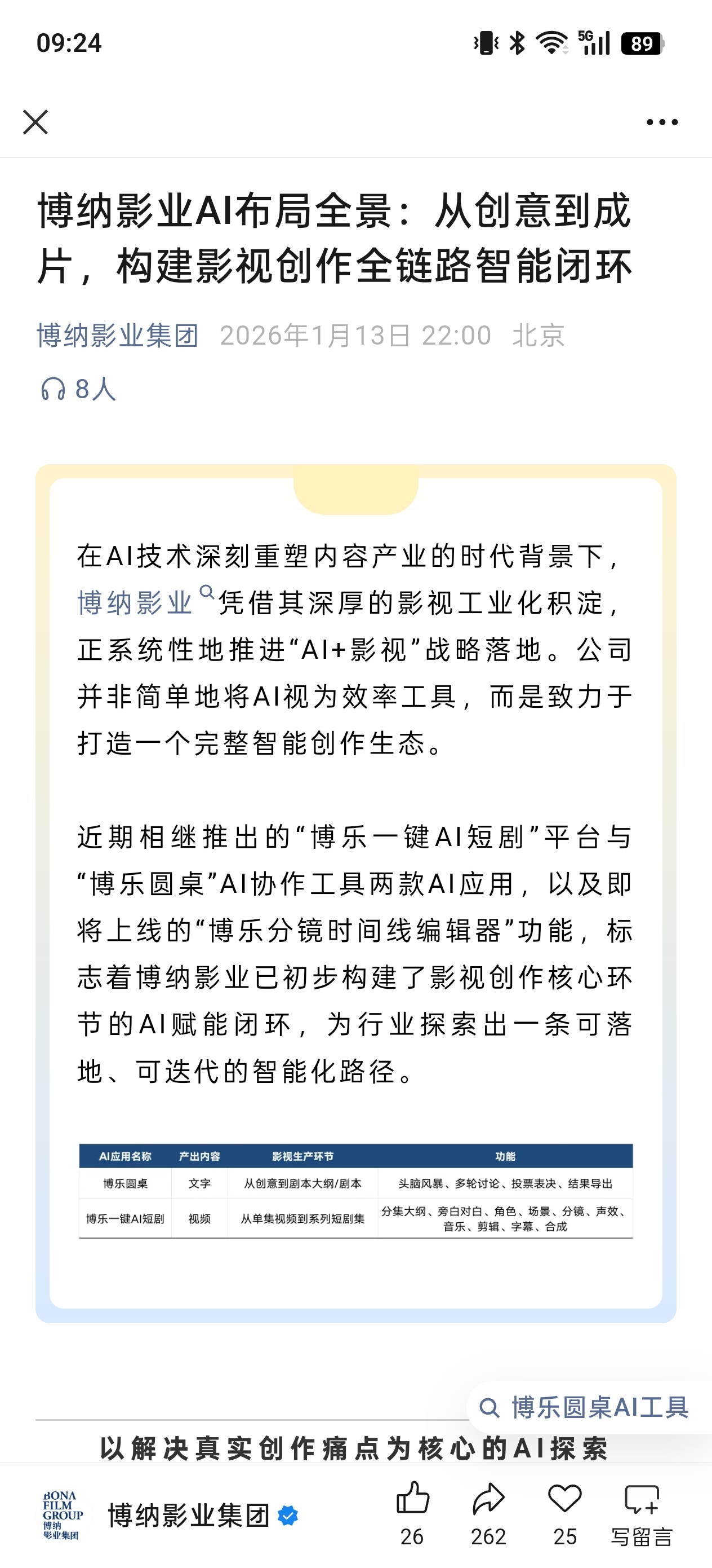 $博纳影业(SZ001330)$ 博纳影业与即梦AI的合作远不止于技术采购,而是“内容+技术”的深度共创。双方联合成立了博纳影业AIGMS制作中心,这是国内首个此类机构,旨在将AI技术系统化地融入电影工业。