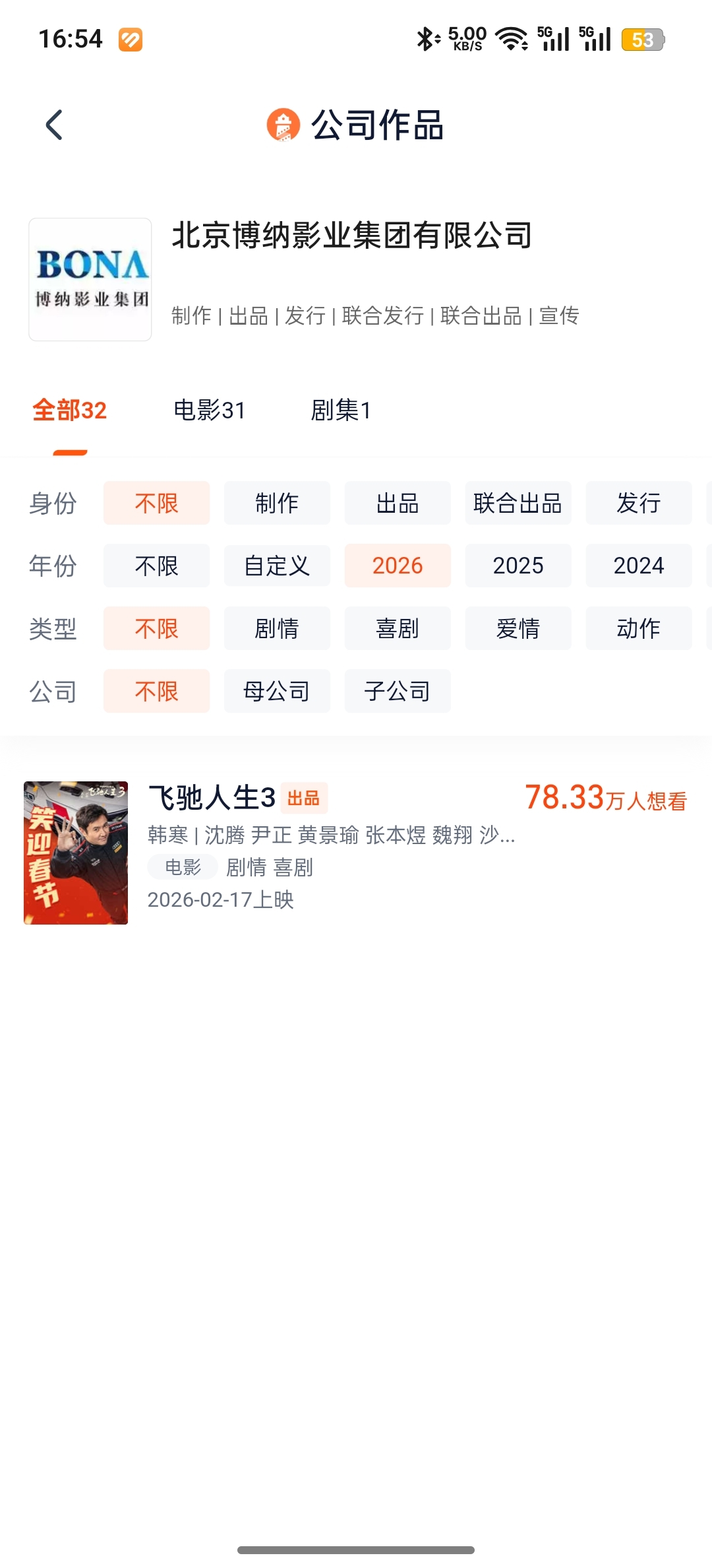 $博纳影业(SZ001330)$ 只有飞驰人生,没有其他